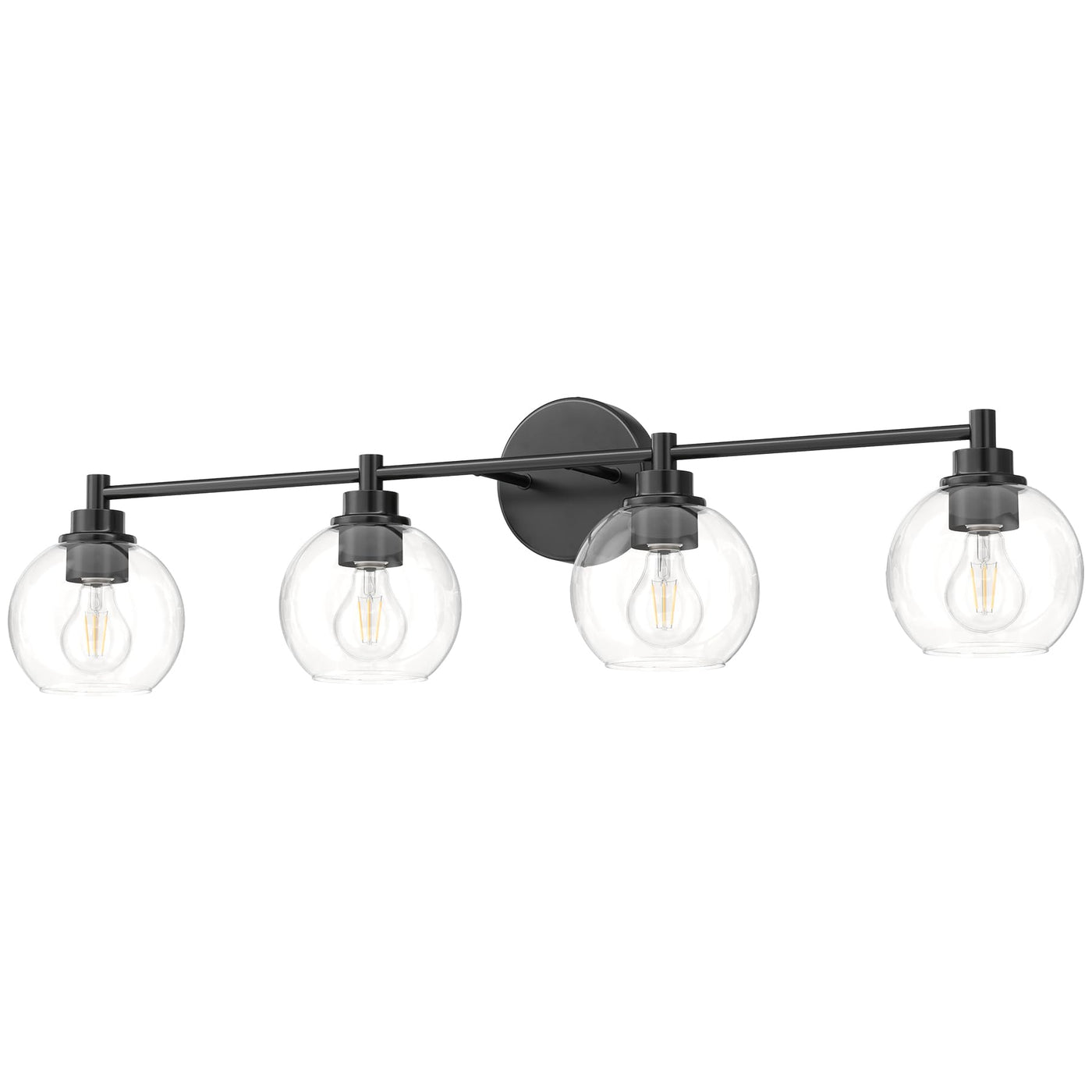 Seeking stylish yet functional lighting to enhance your home decor? Meet Vonluce's 4 light bathroom vanity fixture. Crafted with clear glass shades and a sleek matte black finish, this light fixture adds a touch of sophistication to any room. Whether you're getting ready for the day or winding down in the evening, our wall light provides the perfect lighting solution. Compatible with bulbs up to 60W and dimmer switches (sold separately), you have complete control over the brightness, allowing you to set the mood effortlessly. Illuminate your home in style with Vonluce's vanity light fixture.