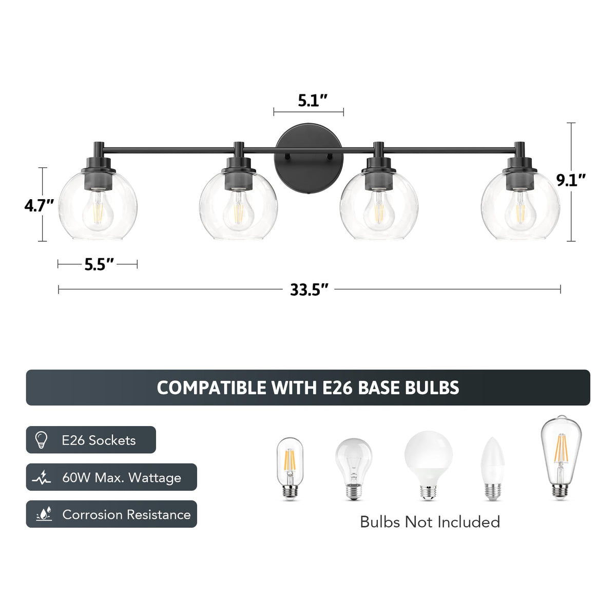 Vonluce Bathroom Light Fixtures, 4-Light Bathroom Vanity Light With Globe Glass Shades E26 Sockets, Vanity Lights Over Mirror Fo