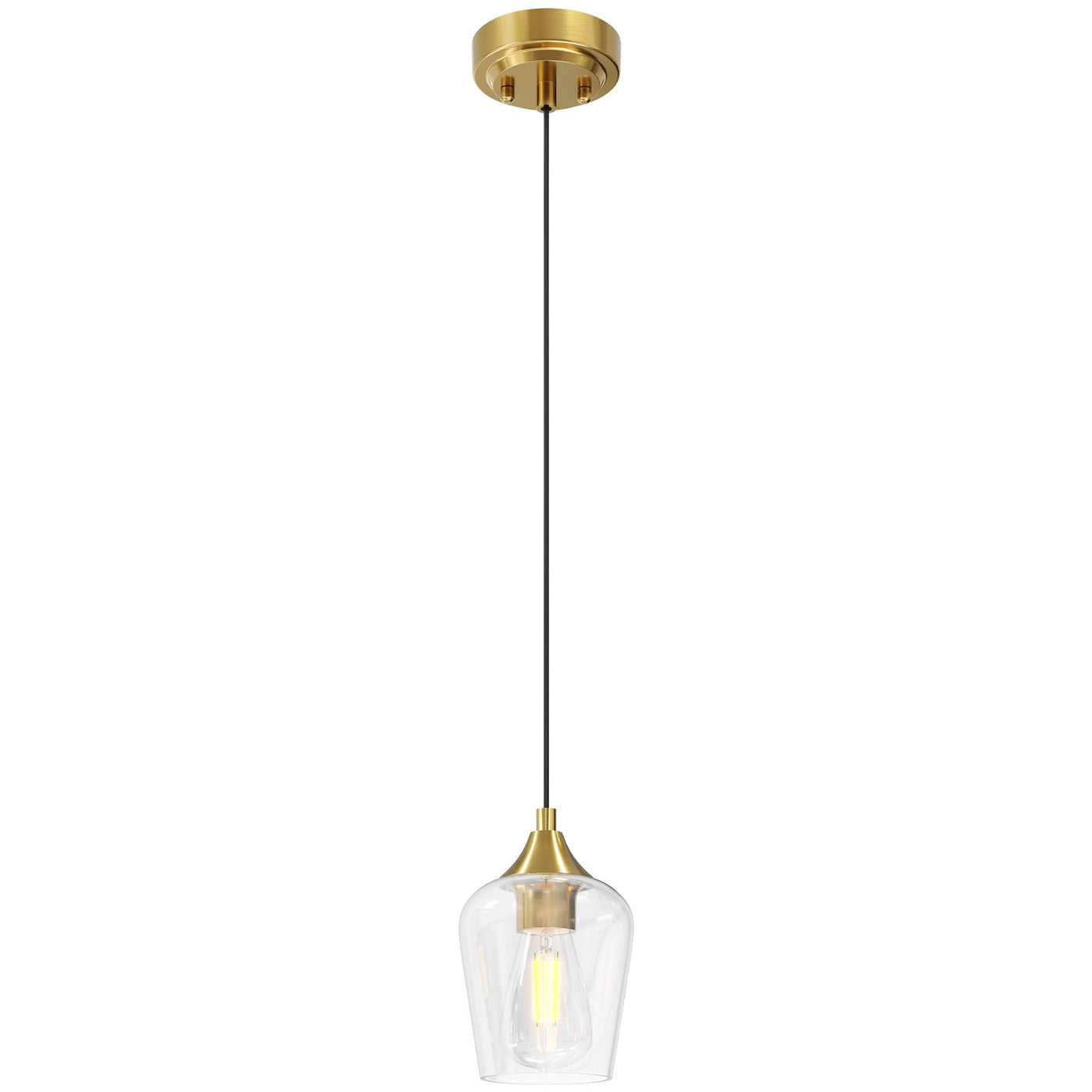 - Illuminate in Style: Bathe your kitchen island in warm, welcoming illumination with Vonluce's pendant light. The elegant combination of sleek gold accents and a clear cylinder glass shade brings a touch of modern charm to your space.