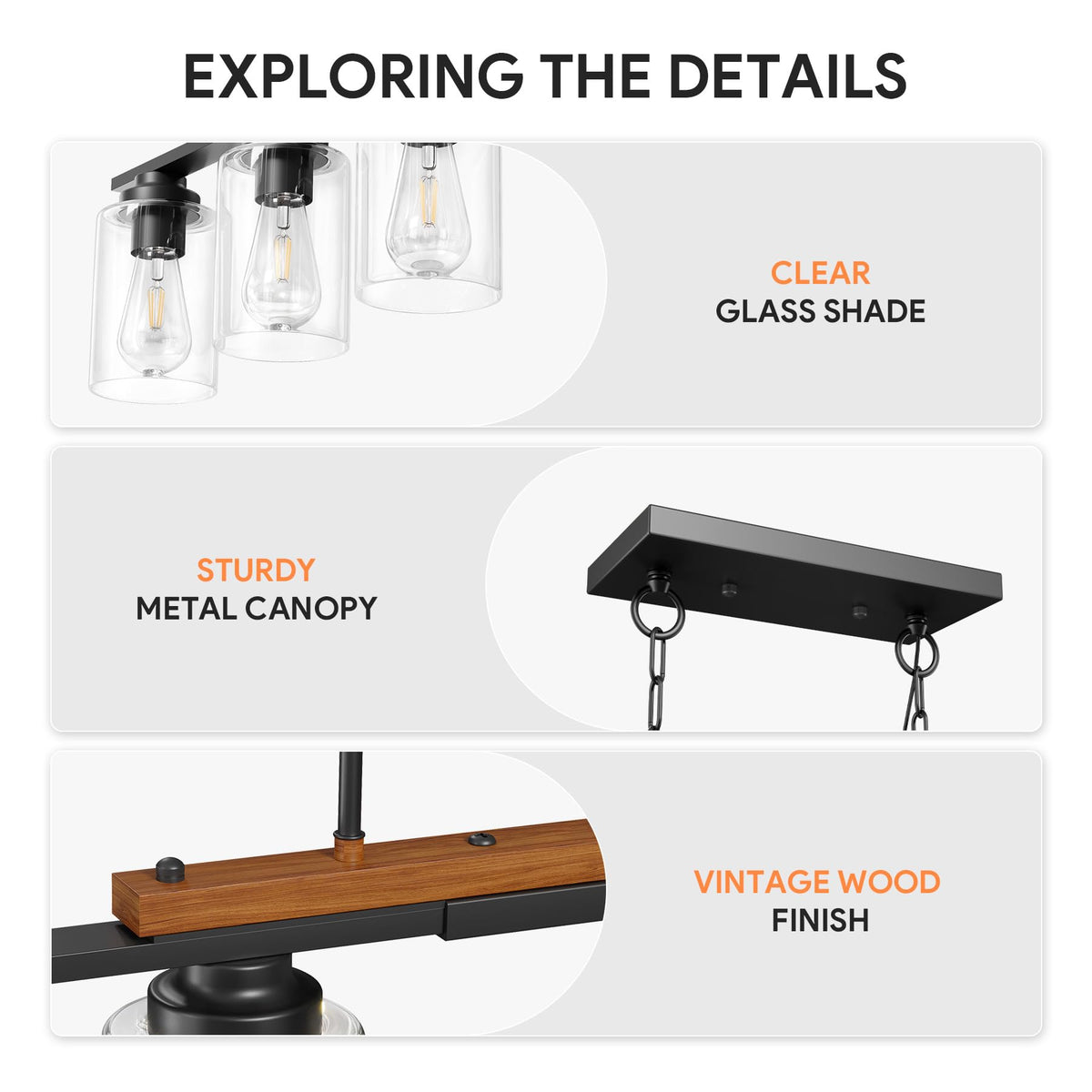 Looking To Upgrade The Lighting In Your Kitchen, Dining Room, Restaurant, Or Cafe? Vonluce'S Kitchen Light Fixture Features A Sturdy Metal Frame With Wood Finished Accents, Giving Your Space A Fresh And Stylish Look. Equipped With Downrods And Chains, This Kitchen Island Light Fixture Allows You To Easily Customize The Height To Fit Your Space. The Versatile Canopy Can Be Installed On Flat Or Tilted Surfaces, Giving You Peace Of Mind Whether This Pendant Light Is Hanging Over A Dining Table Or Kitchen Island. Whether You'Re Enjoying Delicious Brunches, Family Gatherings, Or Simple Weeknight Dinners, This Linear Chandelier Provides The Perfect Ambient Light For Both Food Preparation And Romantic Dining. Add This Farmhouse Light Fixture To Your Home Or Cafe And Watch Its Flattering Glow Envelop The Entire Space.