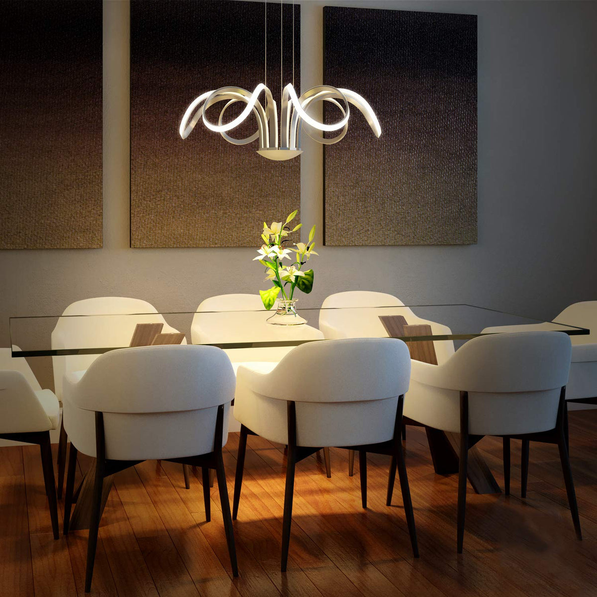- **Striking Design**: Featuring six flowing "petals," this chandelier mimics the beauty of a flower in bloom, providing an artistic focal point that captivates attention.