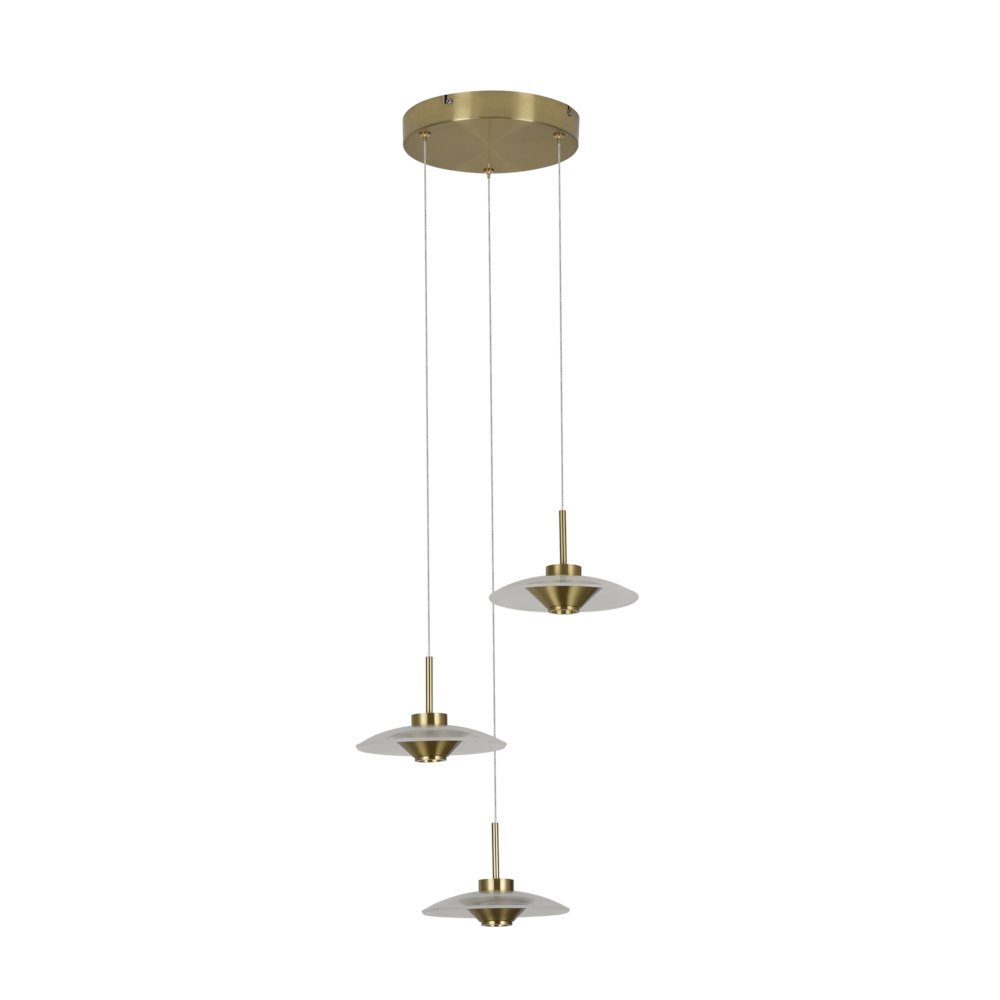 Vonn Ferrara 16" Led Pendant Chandelier, 3-Light Adjustable In Antique Brass, Etl Certified