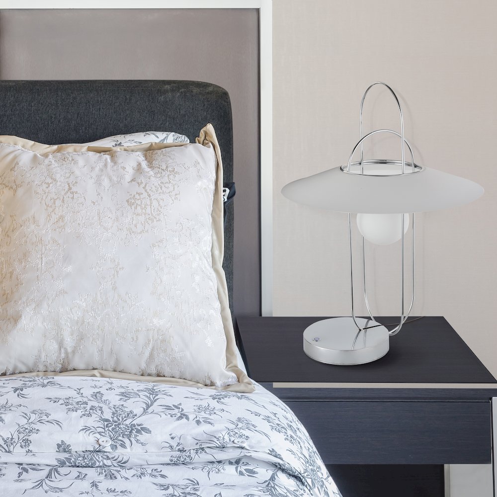 - **Elegant Design**: Featuring a sleek metal plate with a frosted glass ball-shaped shade, this modern table lamp complements various decor styles, from transitional to contemporary.