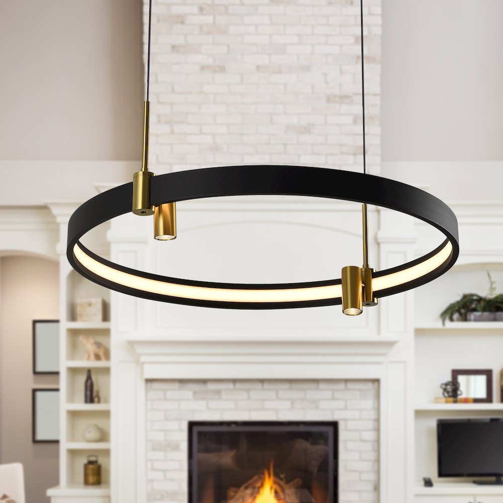 Vonn Tania 23" Black Pendant Light, Height Adjustable Led Chandelier With Antique Brass Spotlights