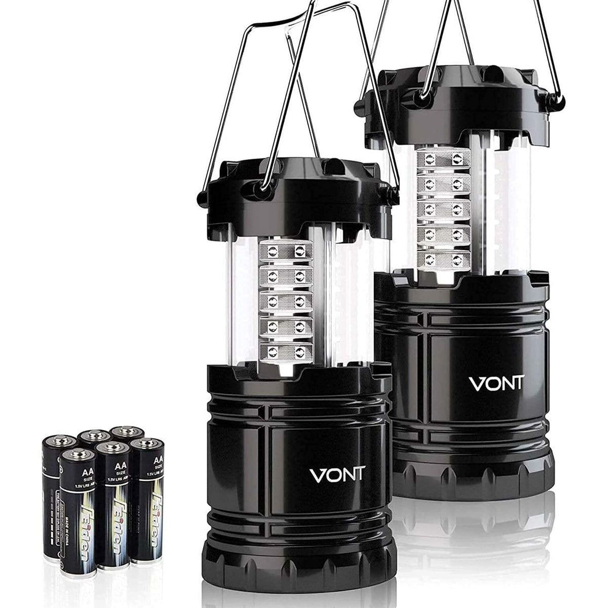 Vont 2 Pack Led Camping Lanterns - Super Bright, Portable, Emergency Survival Lights, Batteries Included