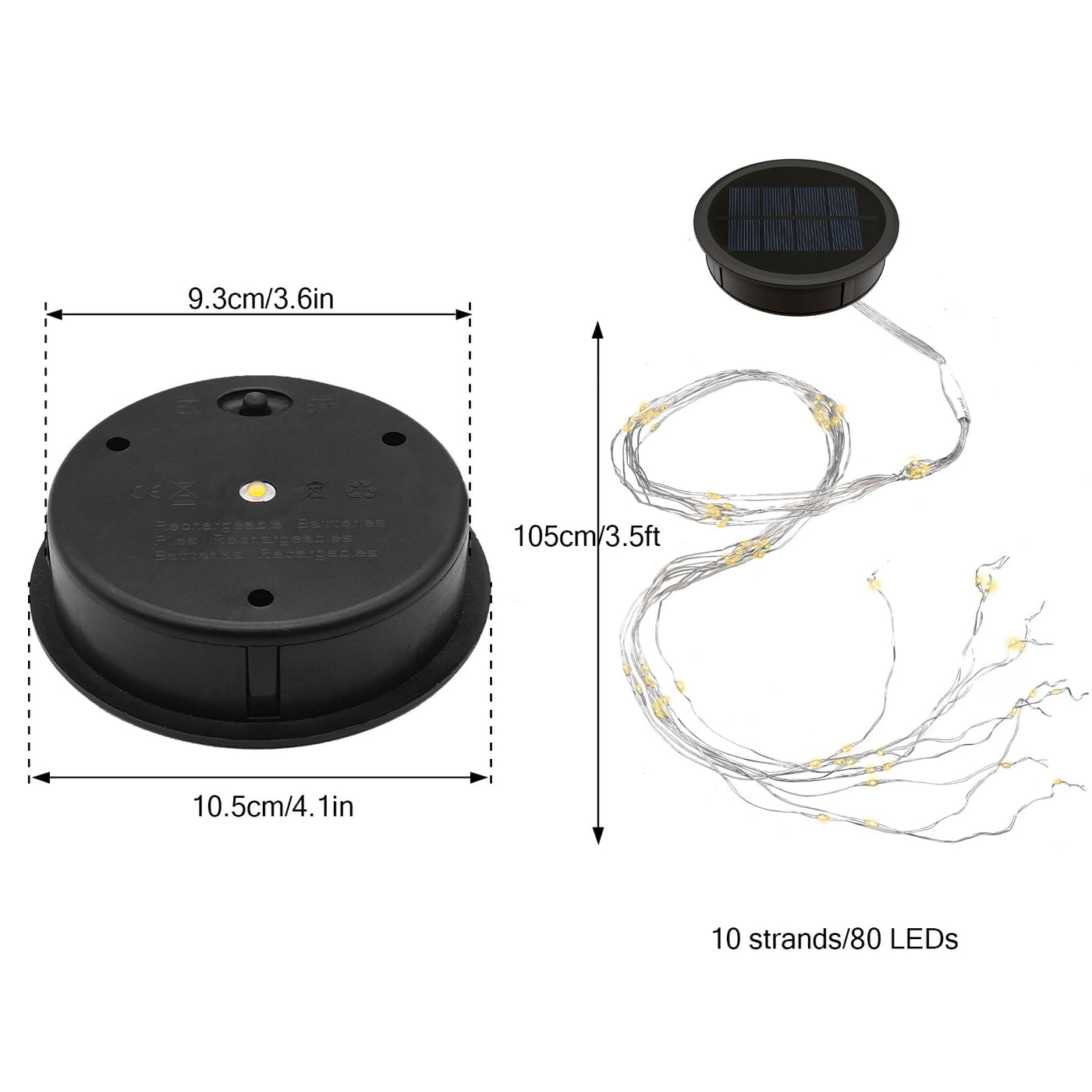 9.3 Cm/3.6 Inch With 80 Waterproof Led String Lights Solar Replacements Parts Suits For Most Solar Watering Can Lights And Outdoor Solar Lanterns. Please Check The Dimensions Of Your Watering Cans And The Caliber Of Your Lanterns To Make Sure The Sizes Match.Product Specification:Top Size: 10.5Cm/4.1Inbottom Size: 9.3Cm/3.6Inmaterial: Plasticsolar Panel: 2V, 290Mabattery: 3.7V 1200Mah Aa Ni-Mhlight Source: Lednumber Of Led Bulbs: 80Spacing Of Each Led: 10Cm/3.94Inled Colour: Warm Whiteswitch Type:&Nbsp; Push-Button Switchcharging Time: 6H-8H(Charge Full Direct Sunlight)Working Time: 8H-12H(Full Charged)