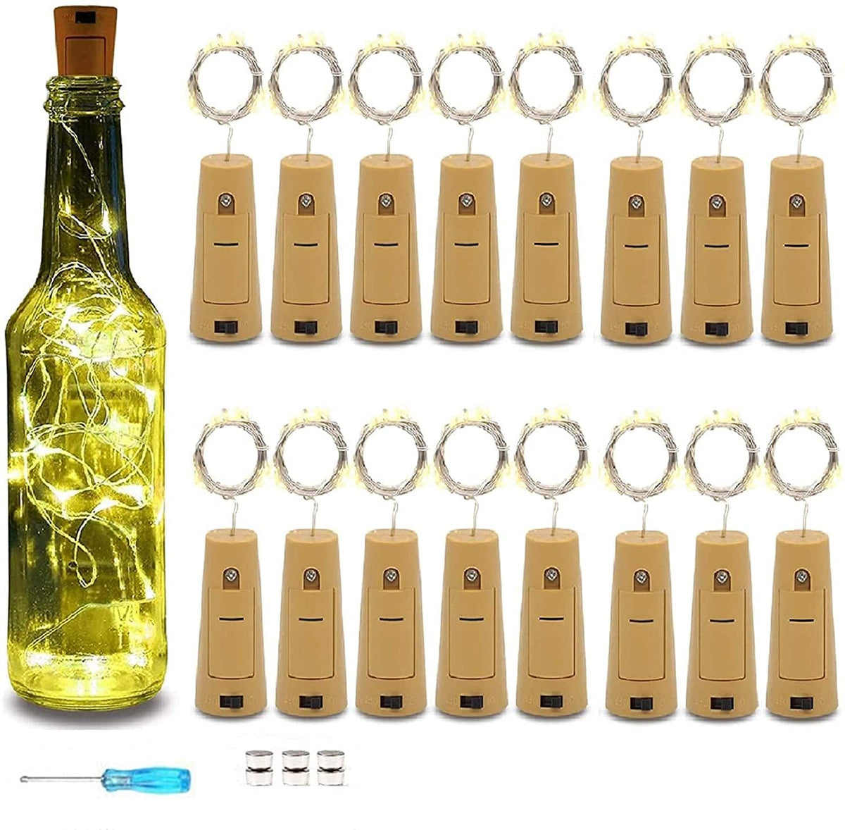 Vookry Wine Bottle Lights With Cork, 16 Pack 20Led Fairy Lights Battery Operated Mini Copper Wire Cork Lights For Liquor Bottles Diy Party Wedding Christmas Festival Bar Decoration(Warm White)