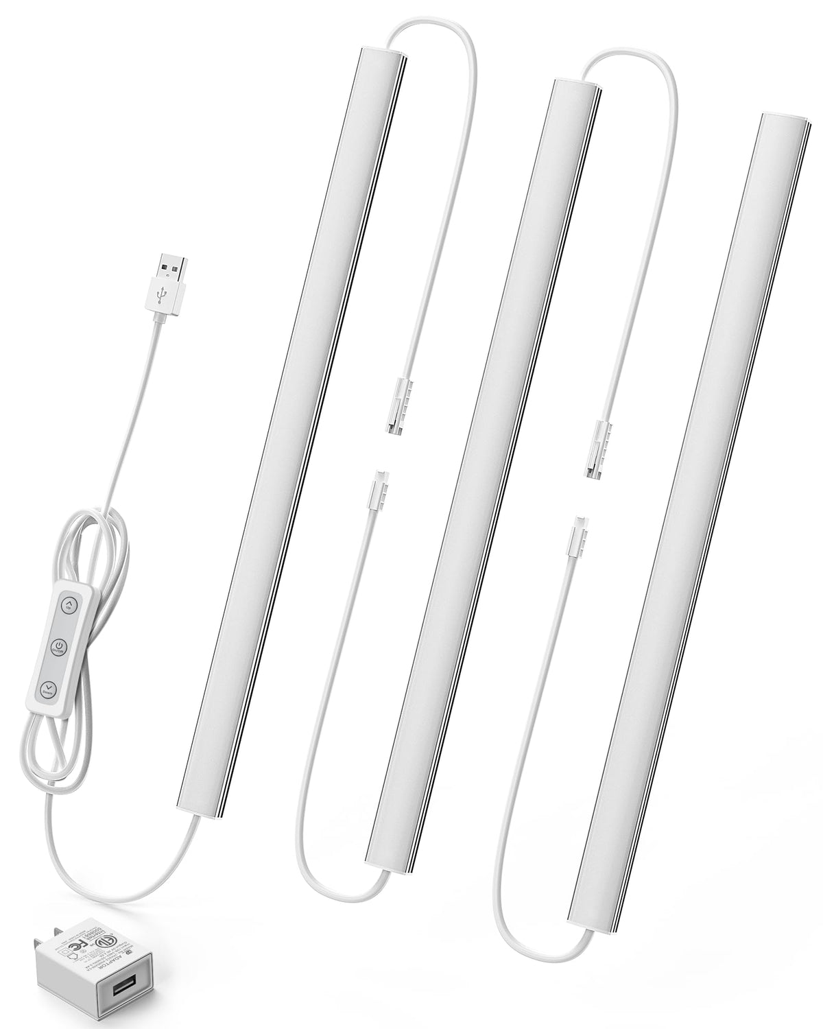 Vovamo Linkable Plug In Under Cabinet Lights, 2 Packs, 12Inch, Natural White 5000K, Dimmable Indoor Led Light Bar With Usb Port And Ul Listed Usb Adapter. This Indoor Led Light Strip Is Extremly Thin And Low-Profile, Can Be Used As ?Nvisiblekitchen Cabinet Light, Wired Closet Lights, Under Shelf Light, Bookshelf Light, Display Case Light, Under Desk Light, Computer Monitor Light, Overhead Stove Light, Sink Light, Coffee Station Light,Cupboard Lights, Sew Machine Light Strip, And Etc.