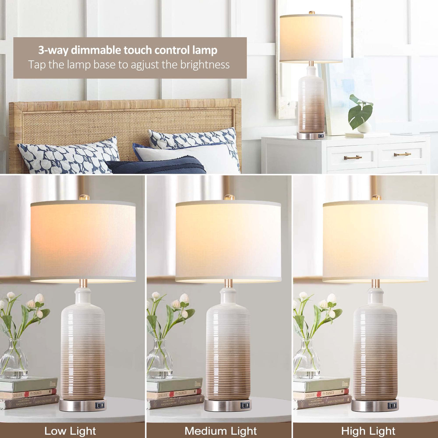 Vpazg Ceramic Table Lamps Set Of 2, 3-Way Dimmable, Usb Charging, White Linen Shade