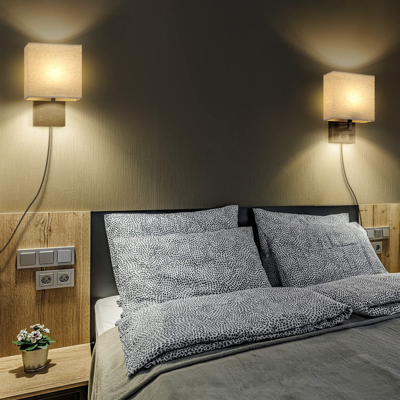 Vrisa Wall Sconces Wall Lamps for Bedrooms Set of 2 Plug in Bedside Lights Wall Mounted with USB Ports Outlet Wall Light Fixture