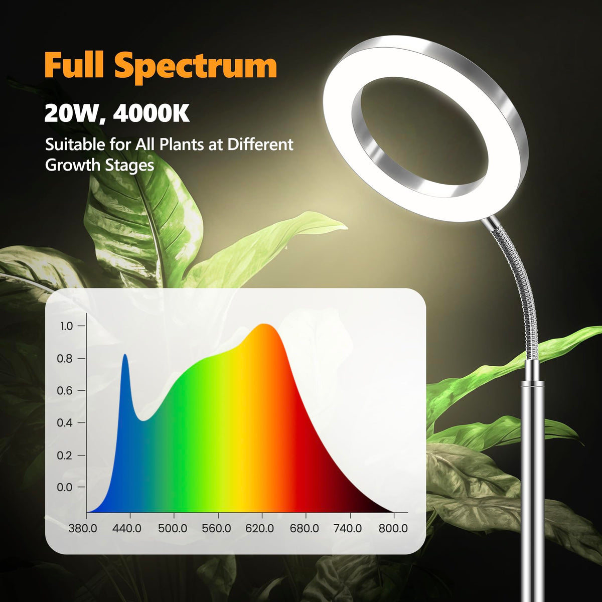 Vsoke Plant Grow Light, Grow Lights For Indoor Plants Full Spectrum, 20W Led Floor Plant Growing Lamp With Height Adjustable Stand, Off Timer 3/9/12H, 10 Dimmable Brightness For Small Large Plants