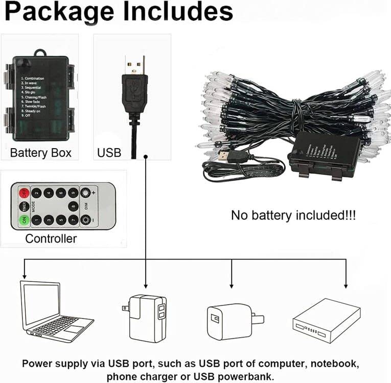 Vtechology 33Ft 100 Led Battery Operated Warm White Christmas Tree Lights 8 Modes String Lights With Timer Indoor Outdoor For Ch