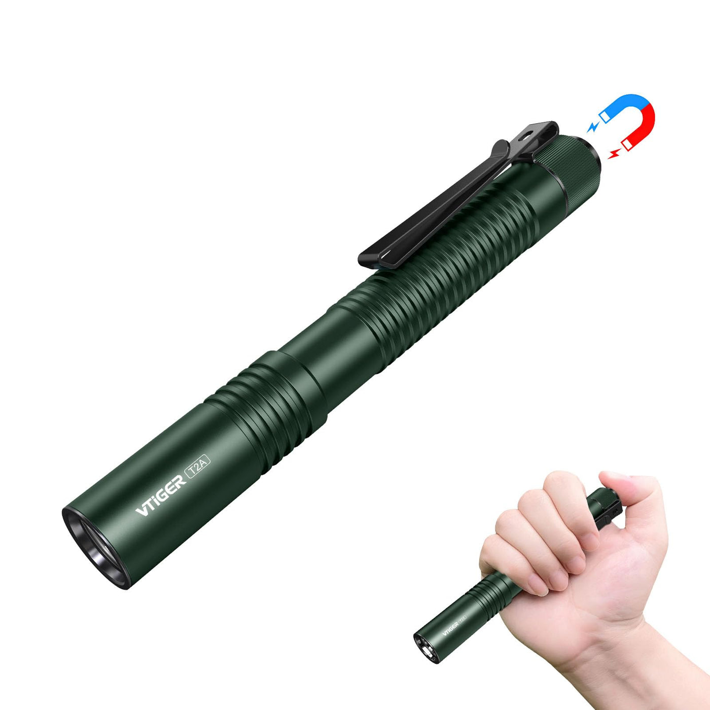 VTIGER T2A Compact EDC Flashlight,1500 High Lumens AA Rechargeable LED Flashlight, Super Bright Small Tactical Tail Switch Pocket Pen Light with Magnet for Camping,Hiking,Outdoor,Home,Emergency