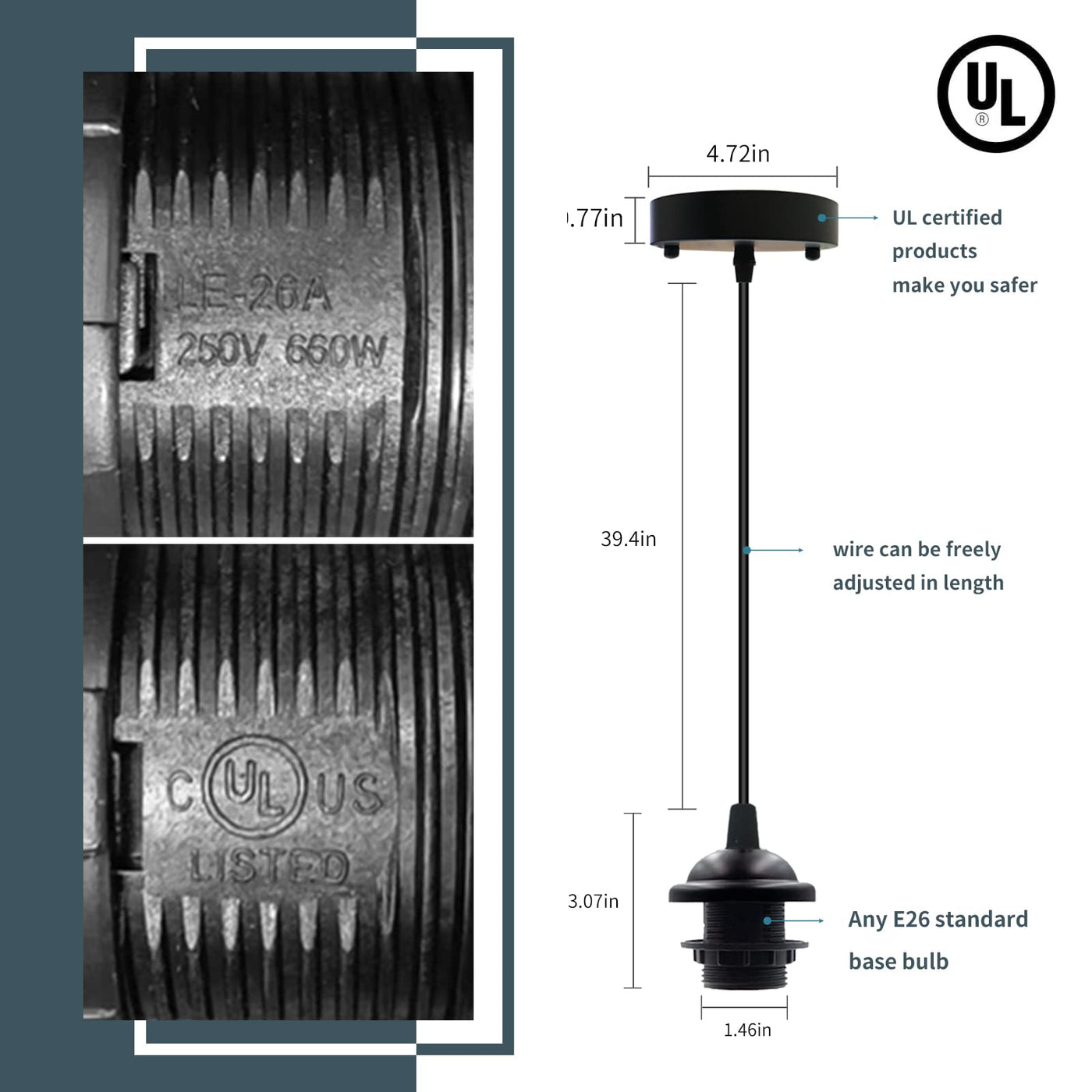 Q: Is the pendant light safe to use?A: Absolutely. This pendant light kit features a UL certified lamp socket and cord, ensuring safety during use. Additionally, it is designed with high-quality materials, including a metal chassis and high-temperature resistant lampholder.
