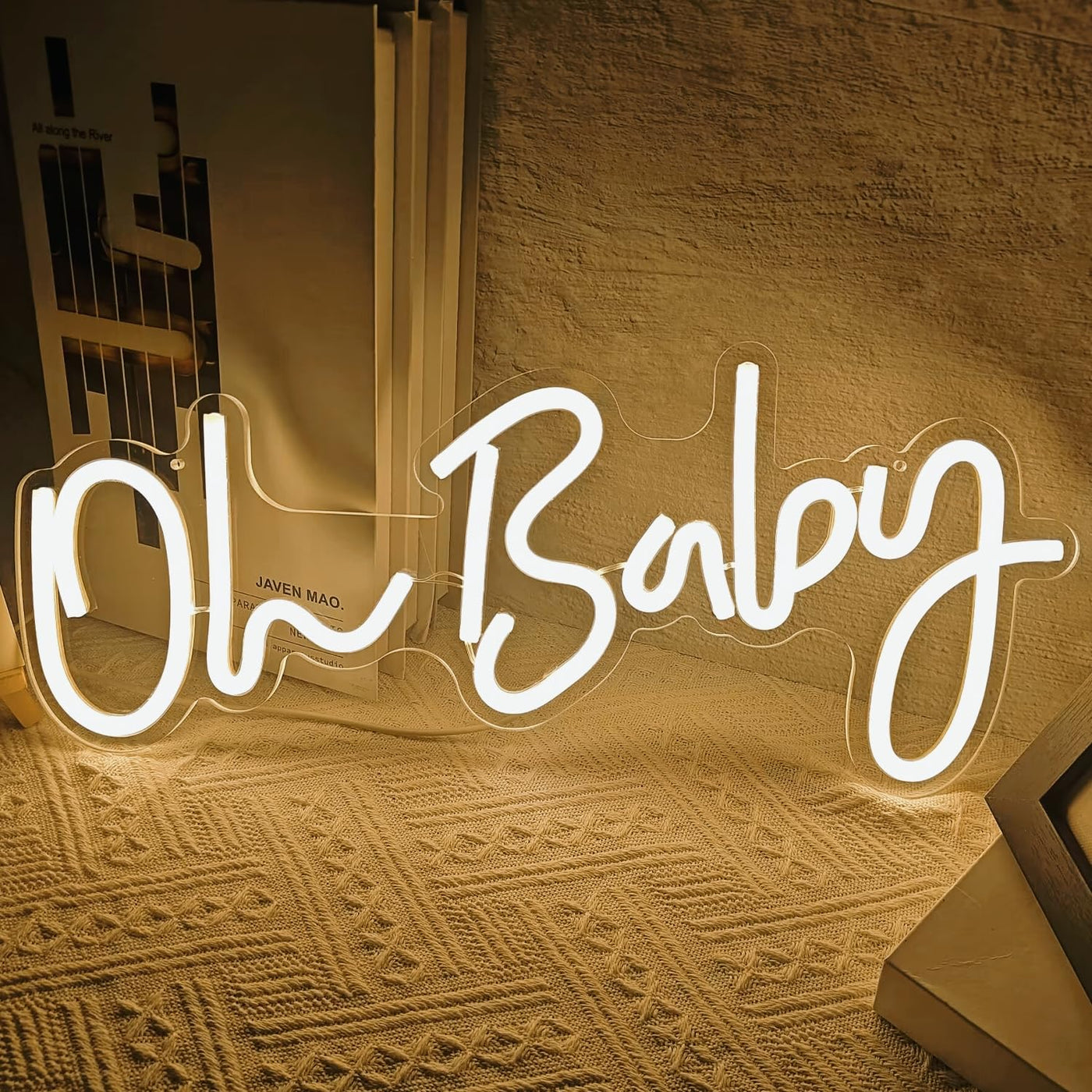 Vveikea Oh Baby Neon Sign Dimmable Neon Light Sign for Wall Decor Oh Babies Sign for Backdrop Led Sign For Baby Shower Wedding B