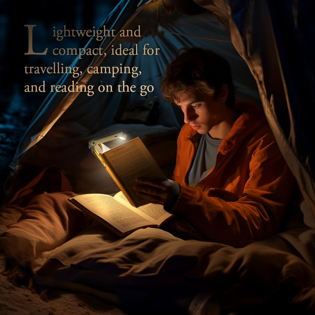 VViViD Book Light, Rechargeable, Reading in Bed Stepless Dimmable, Studying, Working, Vacations (Bookmark Clip)