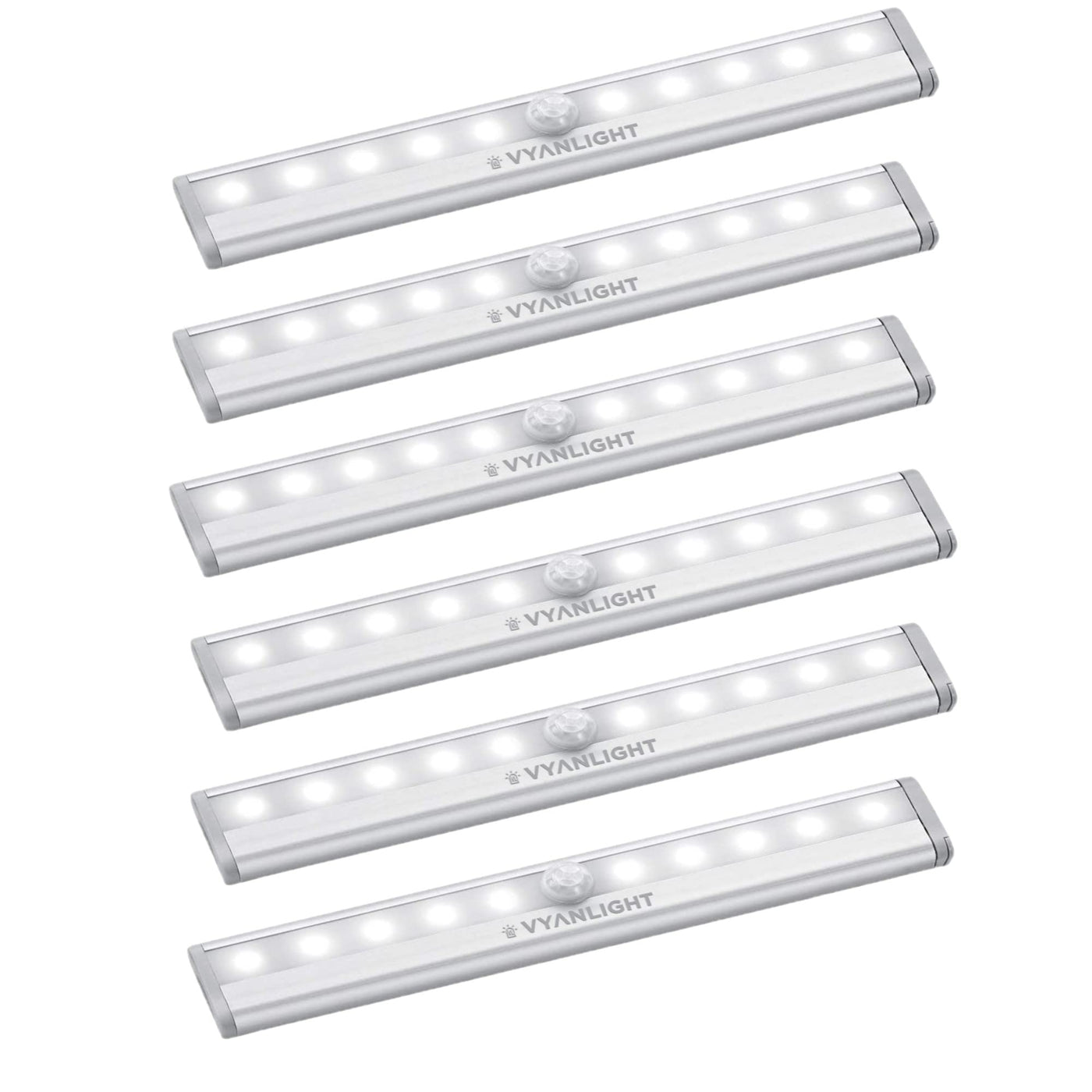 Vyanlight Motion Sensor Led Under Cabinet Lights, 10 Strips, Battery Operated, White, 6 Pack