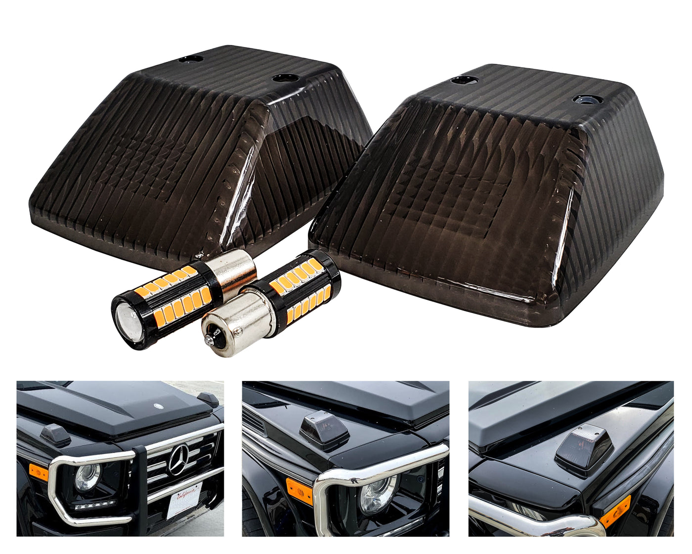 (W) Front Smoke Turn Signal Lens for Mercedes G Class SUV 500 550 G63 wagon with Error Free Amber LED Bulb For Mercedes G500 G55