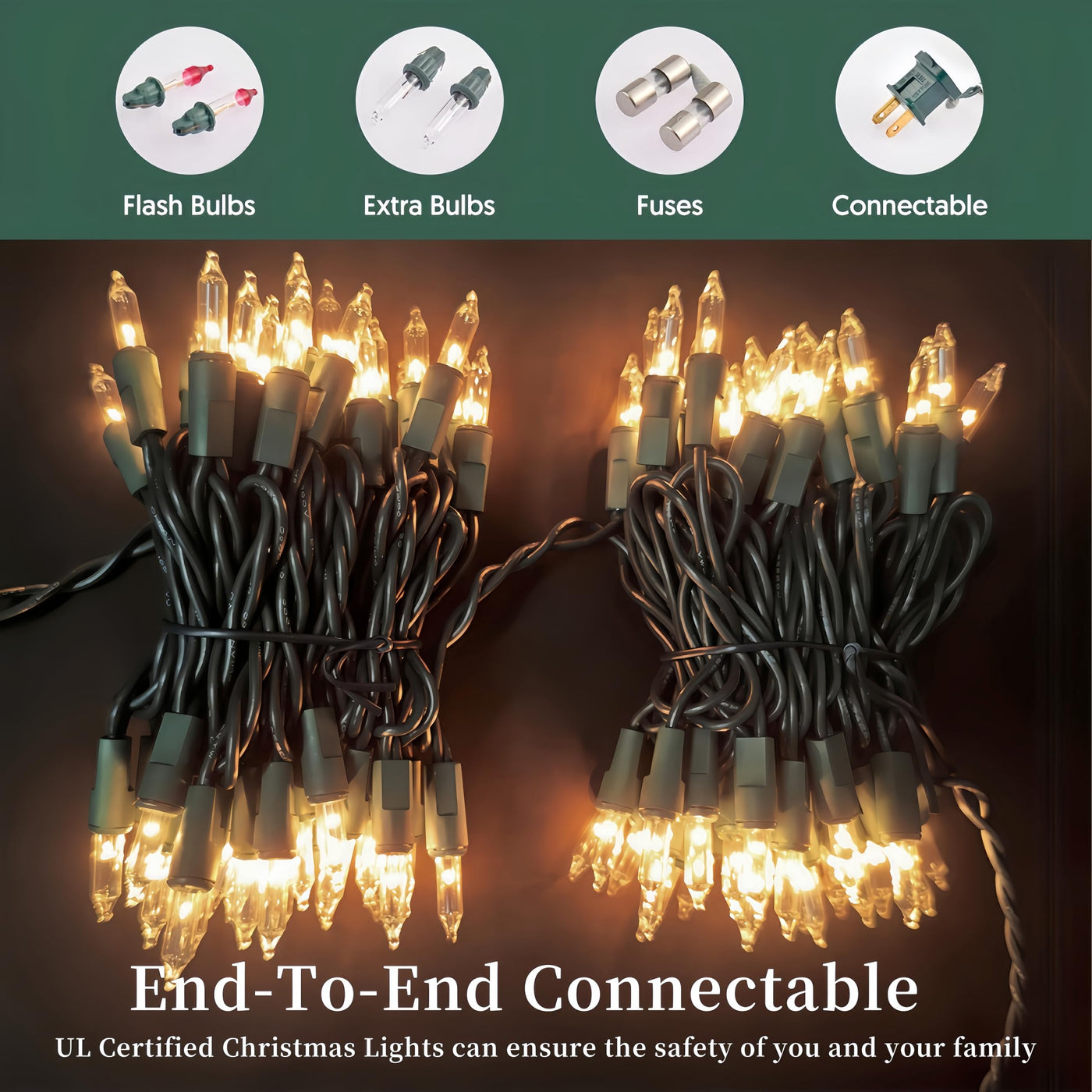Wabarle Christmas Lights 100 Count Clear White Incandescent String Lights 21ft UL Certified Green Wire for Indoor/Outdoor Decor
