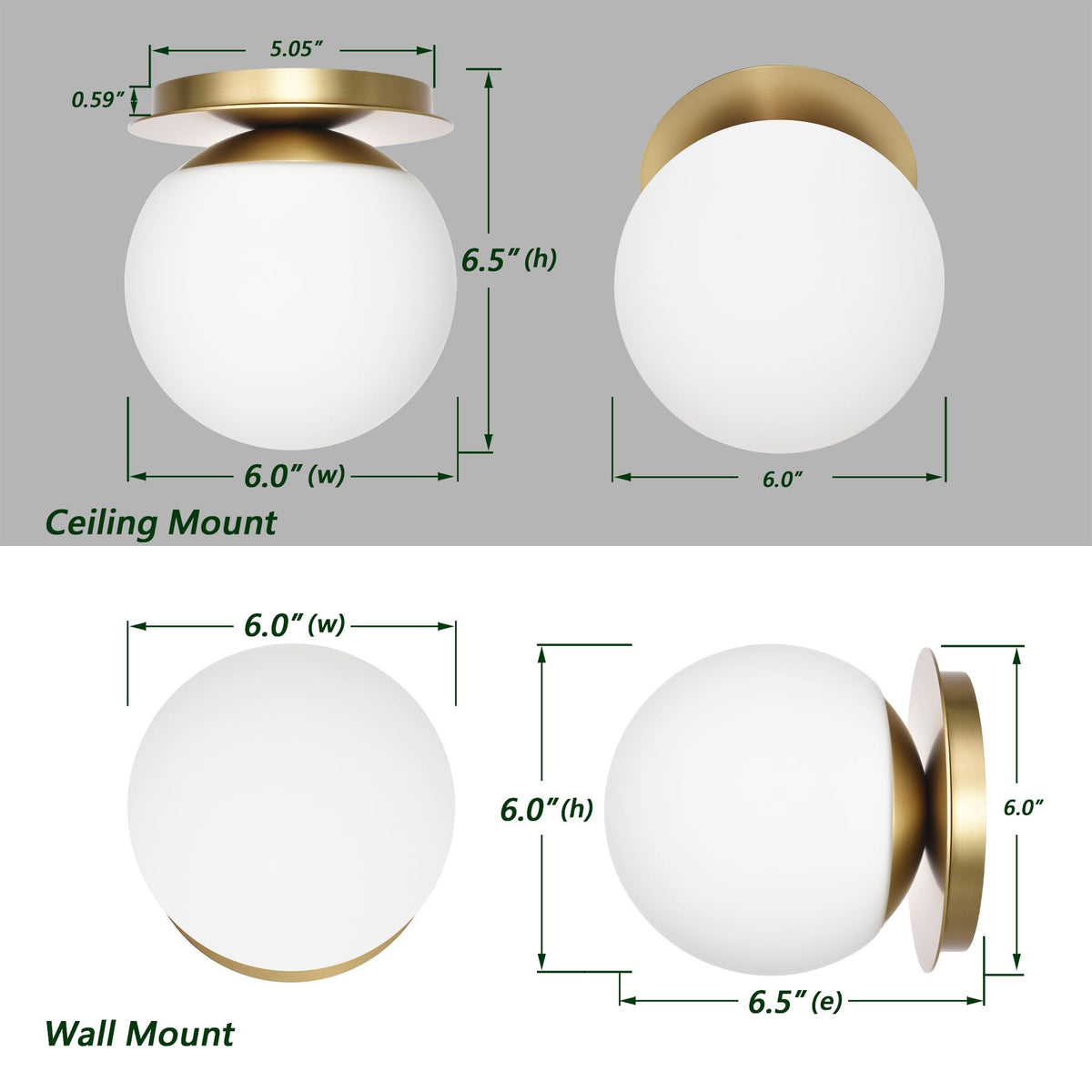 The Perfect Multifunctional Wall / Ceiling Light Fixture Style: Modern / Metro Finish: Aged Brass Material: Metal & Glass Dimensions: 6 W x 6 H x 6.5 D Bulb Requirements: This wall / ceiling light fixture uses one medium-based E26 bulb (not included) and is fully dimmable when used with a dimmable bulb and compatible dimmer switch Max Wattage: 60W Application: Bedroom, Bathroom, Living Room, Kitchen, Hallway, Entrance, Foyer, Stairway, etc. Installation: Hardwire