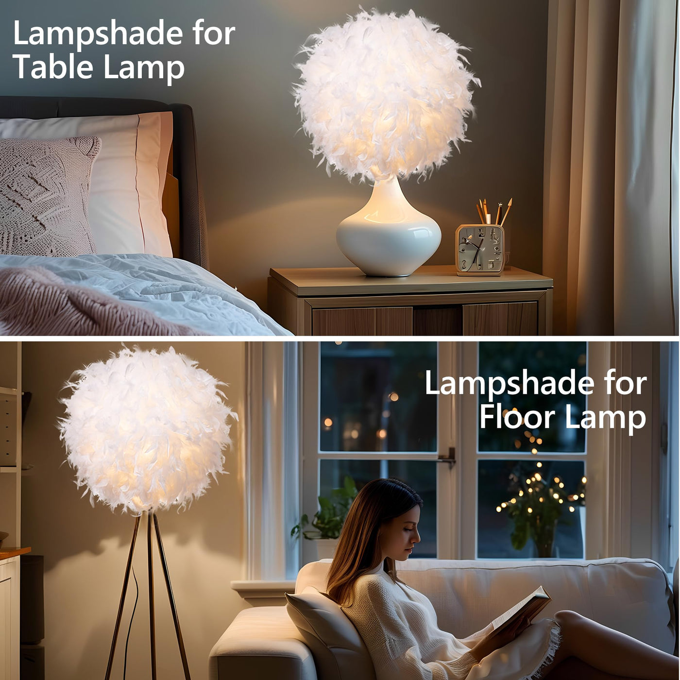 Waneway 19.7 inches Feather Lamp Shade for Ceiling Pendant Light, Lampshade for Table Lamp and Floor Lamp for Living Room, Bedro