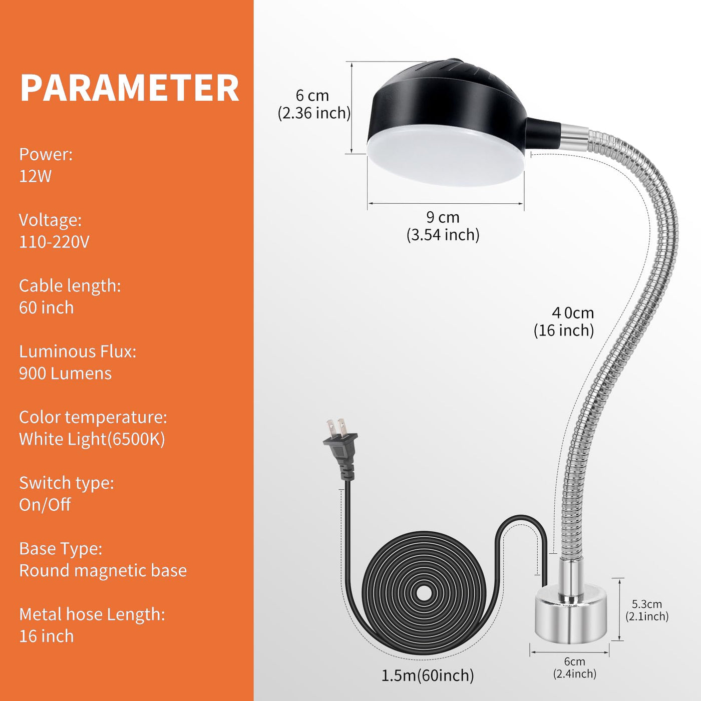 Wangjiatai Led Work Light, Led Machine Light, Magnetic Work Light, 400Mm Flexible Gooseneck Lamp With Magnetic Base, For Sewing