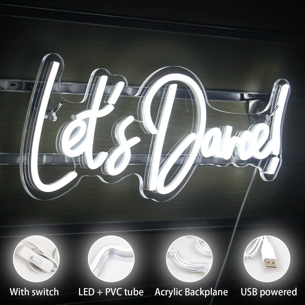 - **Vibrant Atmosphere**: The Let's Dance neon sign creates a warm and inviting ambiance, making it an ideal decorative piece for parties, events, or even as a night light in your room.