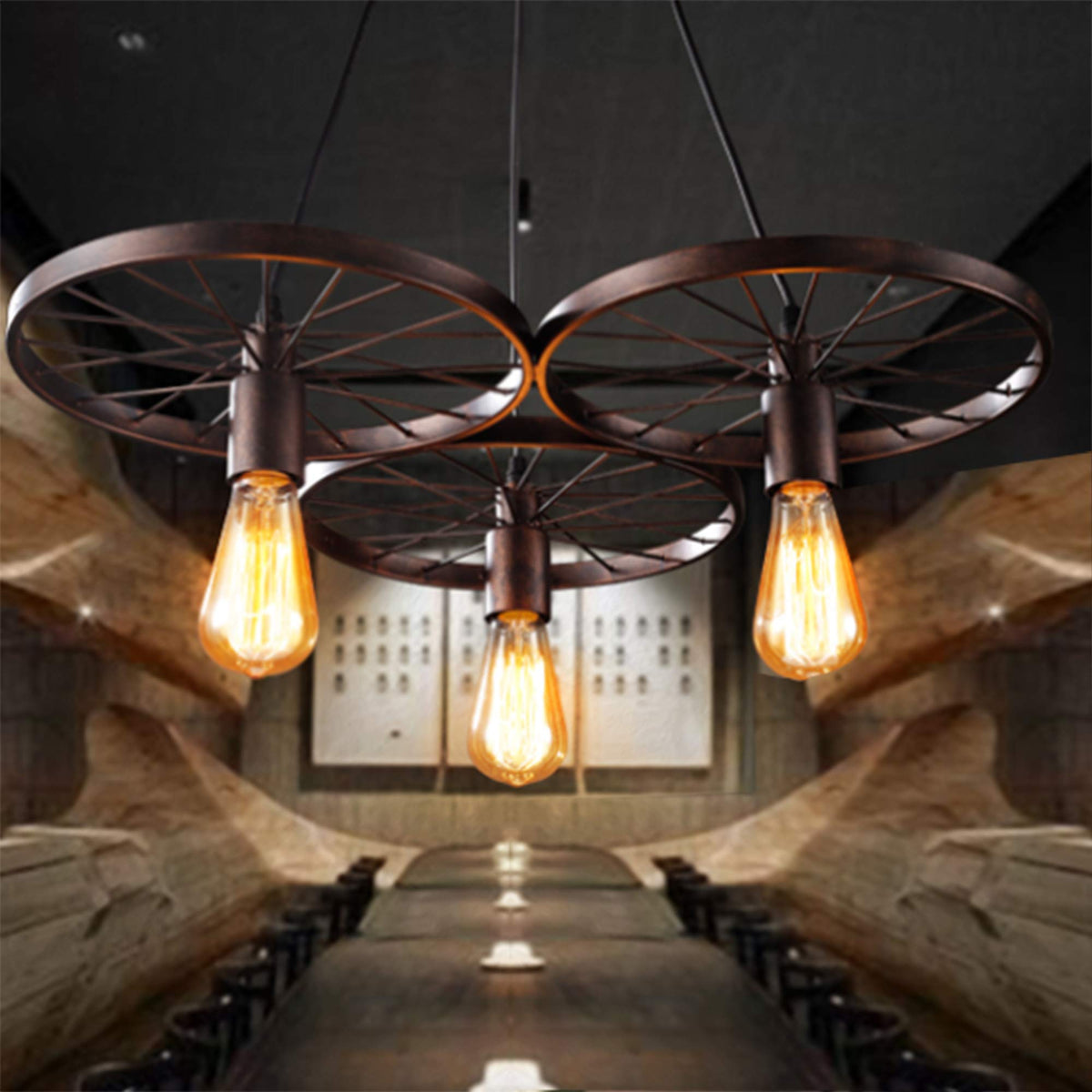 - **Vintage Aesthetic**: Crafted from antique metal and featuring three round wheel-like metals, this chandelier radiates a beautiful vintage vibe that complements any interior design style.