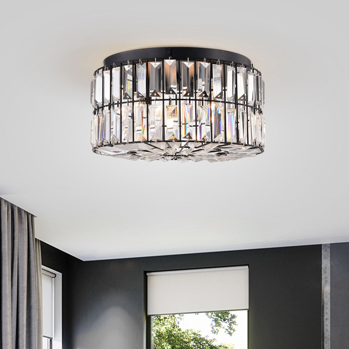 This fabulous chandelier design flush mount is the perfect choice for your living room or over your dining table The drum-shaped shade is encrusted with royal-cut crystals to add elegance and transform the look of your space