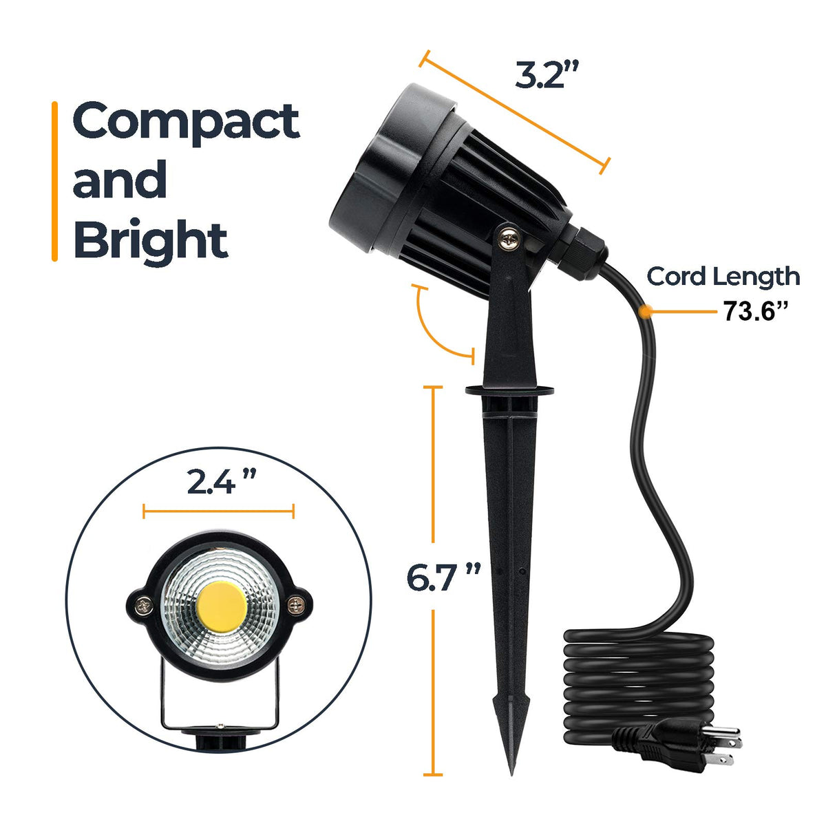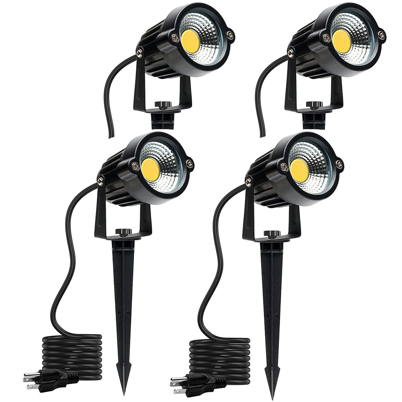 Warm White Spot Lights, Led Landscape Lighting Lights 5W 3000K Outdoor Spotlights Yard Spot Lights With Spiked Stand Waterproof Spotlight For Garden Yard House Lawn Decoration Us 3-Plug (4 Lights)