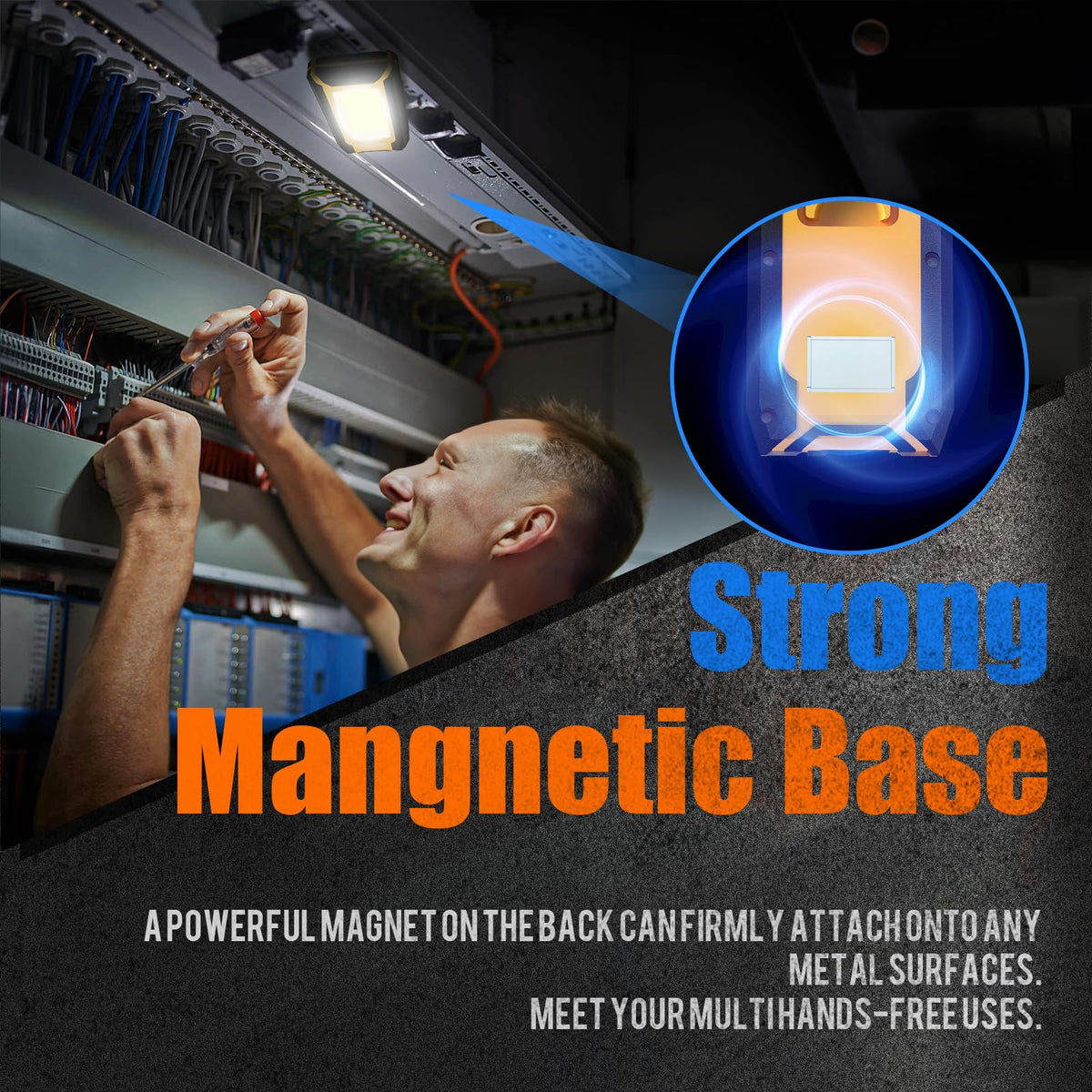 Warsun Led Work Light Rechargeable, Magnetic Cob Portable Worklights, 40W 1500 Lumens,Metal Hanging Hook 3 Lighting Modes, Job Site Lighting For Car Repairing,Camping,Hunting (Yellow)