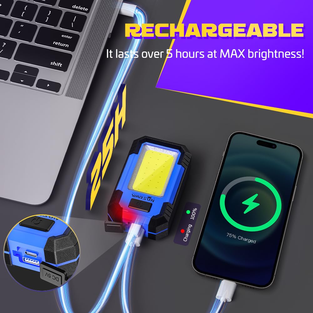 Warsun Led Work Light Rechargeable Magnetic Portable Mechanic Worklight Battery Powered 1200 Lumens Super Bright For Car Repairi