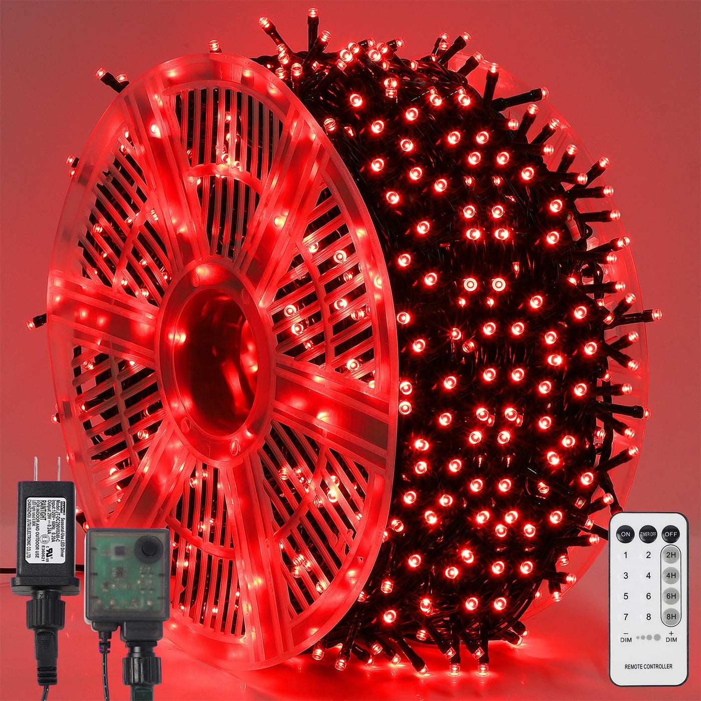 WATERGLIDE 1000 LED Christmas Red String Lights, 328 FT Green Wire LED Valentines Day Decorative Fairy Lights with Remote & 8 Modes