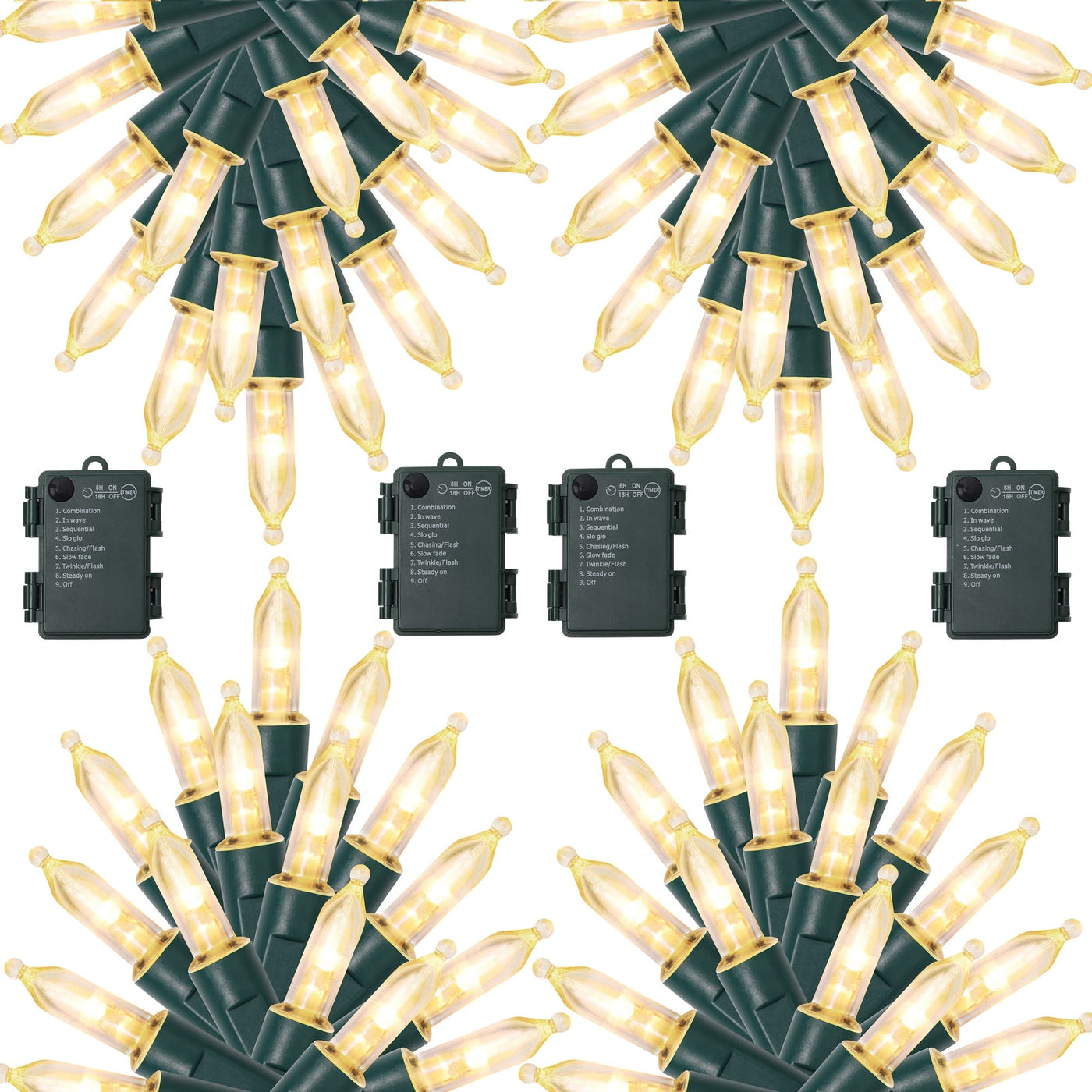 Waterglide 4 Pack 50Led Outdoor Christmas Lights, 16Ft Battery Operated Mini String Lights With 8 Modes & Timer, Xmas Tree Lights Waterproof For Patio Garden Party Wedding Holiday Decor, Warm White