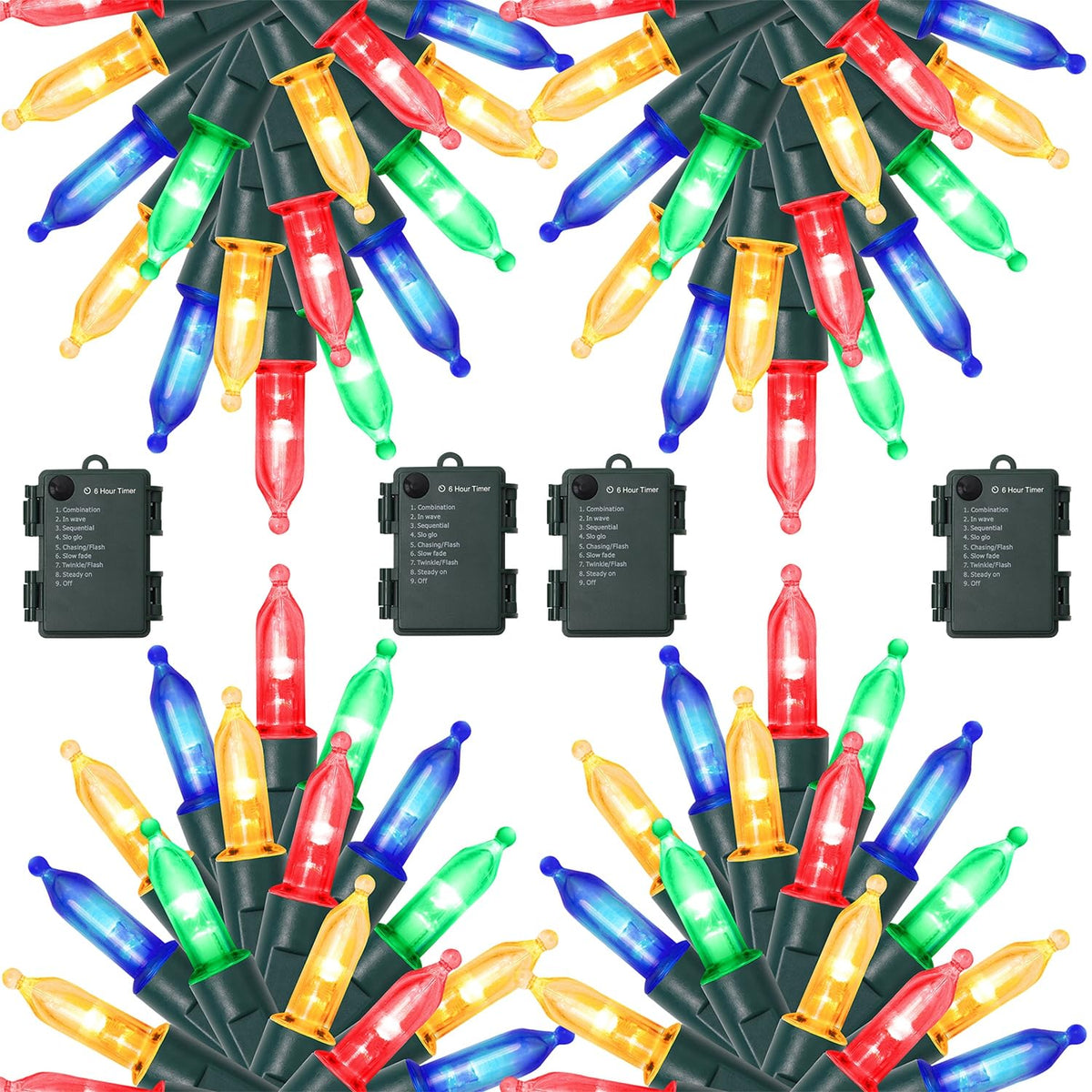 Illuminate your festive celebrations with the WATERGLIDE 4 Pack 50 LED Outdoor Christmas Lights. These battery-operated mini string lights are designed to enhance your holiday decorations, providing a warm and inviting atmosphere for various occasions such as Christmas, Halloween, Valentines Day, and weddings.