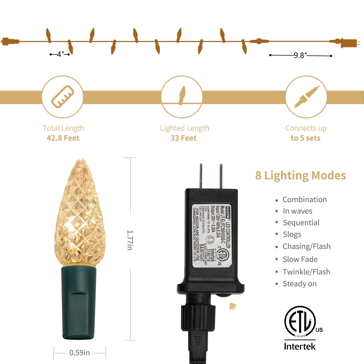 Total Length: 42.8 feet (33 feet of lights plus 9.8-foot lead)