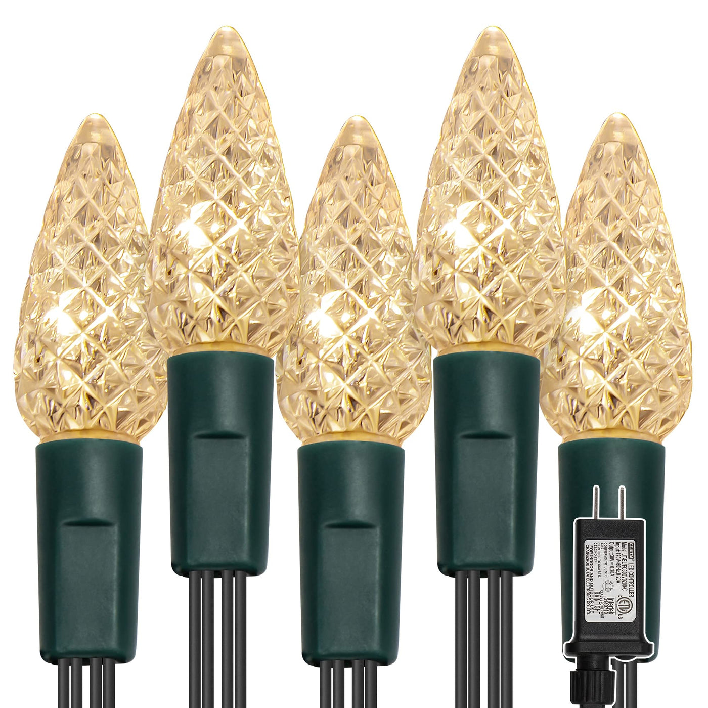 WATERGLIDE Christmas Lights 33ft 100 LED Warm White Faceted String Lights Green Wire Waterproof 8 Lighting Modes Indoor Outdoor