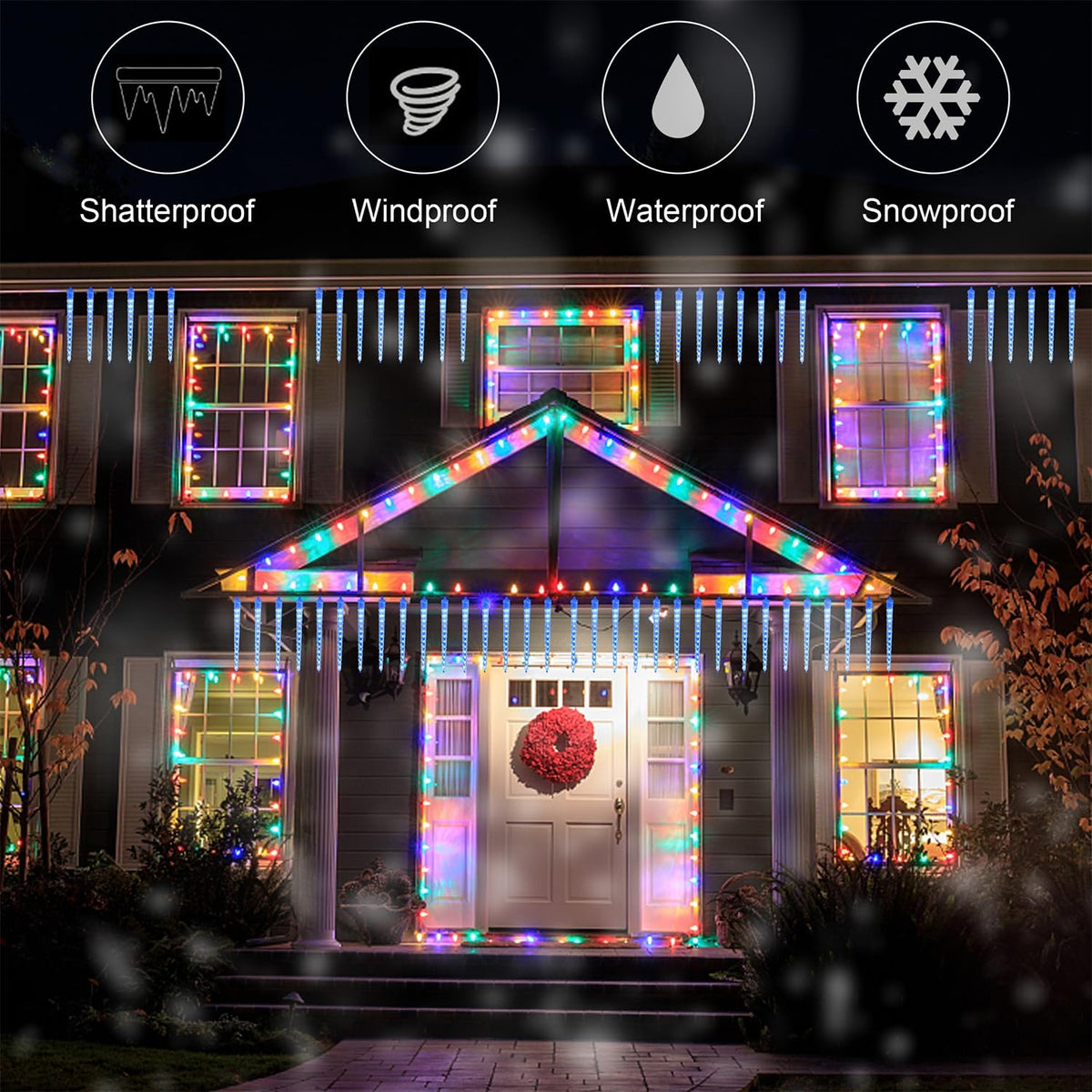 Q: What materials are used in the construction of these lights?A: The icicle lights are made from premium polycarbonate plastic, ensuring durability and quality, while the SMD LED beads provide consistent brightness.