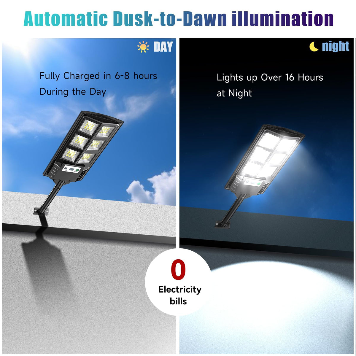 Q: How bright is the Wattake Solar Street Light?A: The Wattake Solar Street Light offers an impressive 15000 lumens of brightness, making it significantly brighter than many other solar street lights in its category. It features a 240-degree wide-angle design and utilizes 5730 LED beads, ensuring enhanced visibility for areas such as garages, yards, gardens, and parking lots.