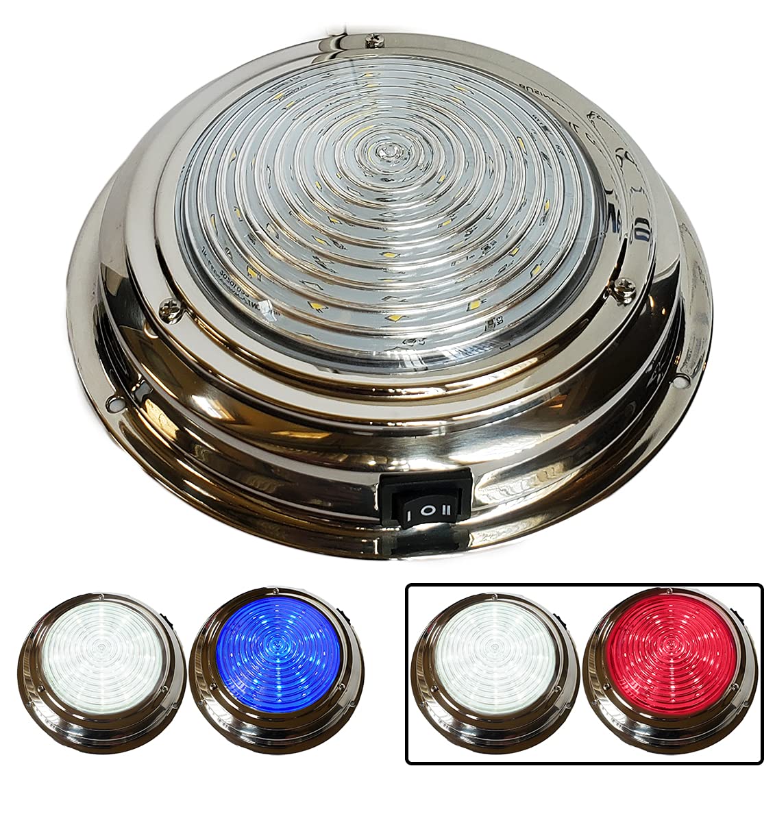 Wave One Marine Dual Color 7'' Led Boat Dome Light 12V Rv | Stainless Housing | Ceiling Cabin Room Surface Mount | Built In Rock