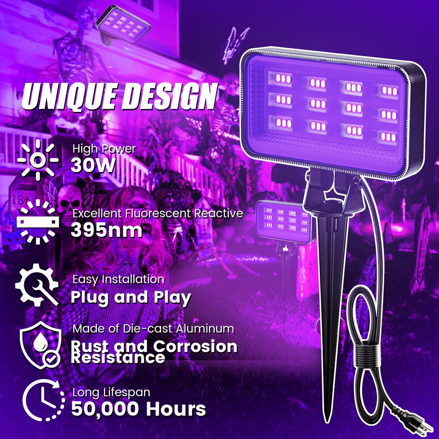 Waygor 30W Black Light Spotlight - IP66 Waterproof LED, 395nm, 2 Pack, Black