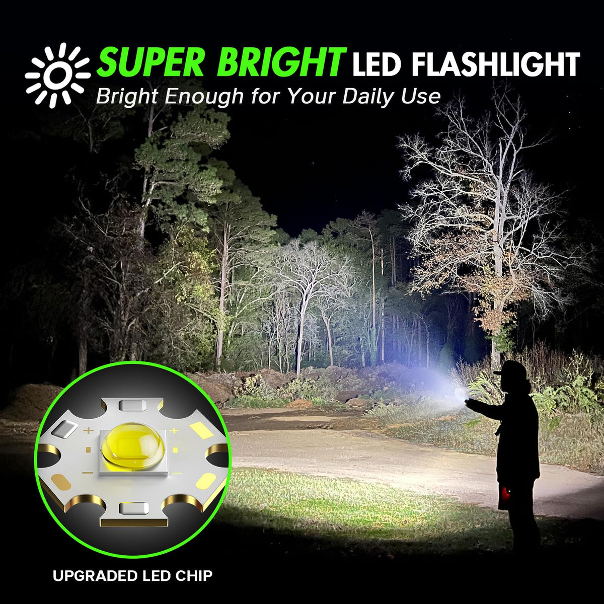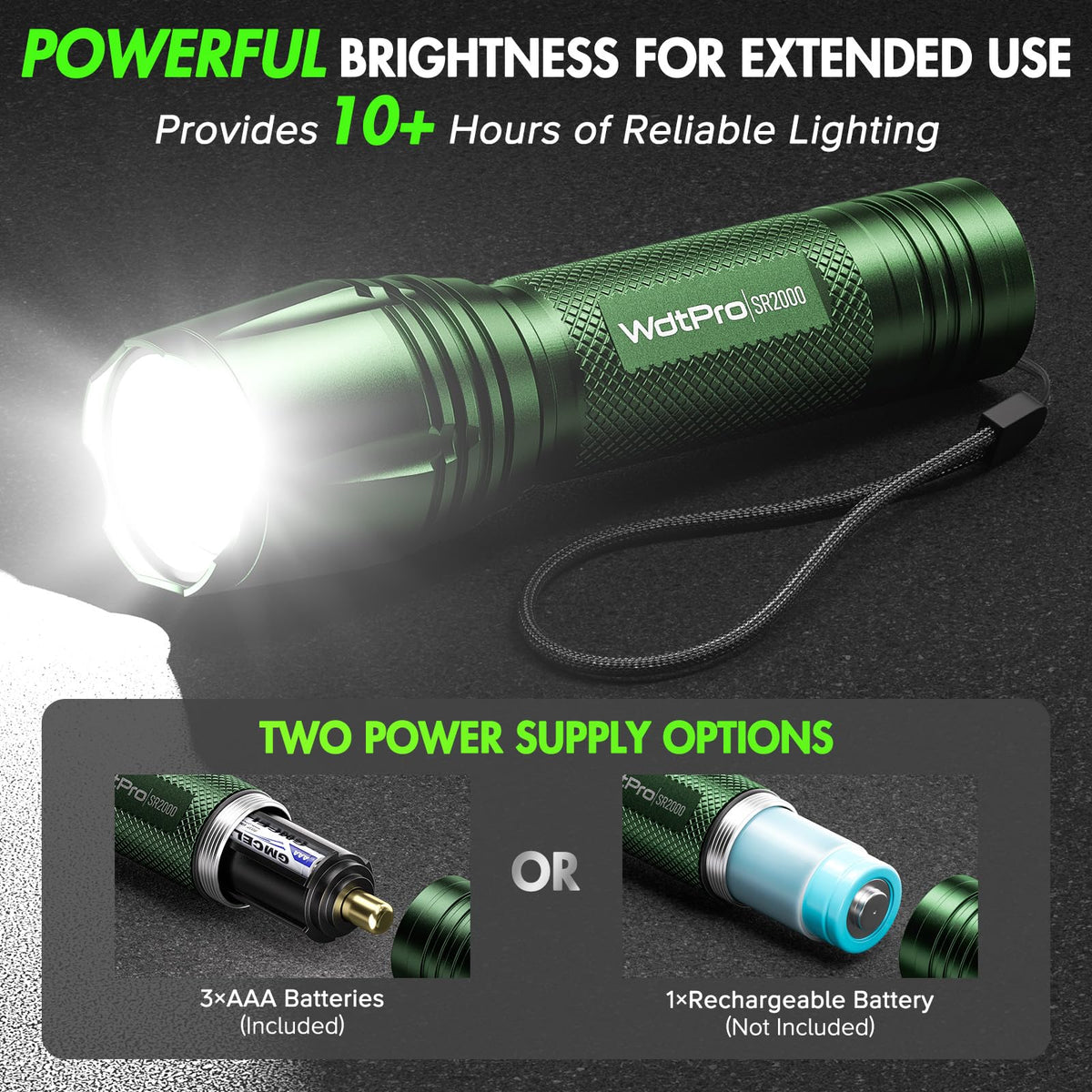 Wdtpro Led Flashlight High Lumens Sr2000 Pro, 2 Pack Brighter Tactical Flashlights With 5 Modes & Zoomable, Powerful Mini Flash