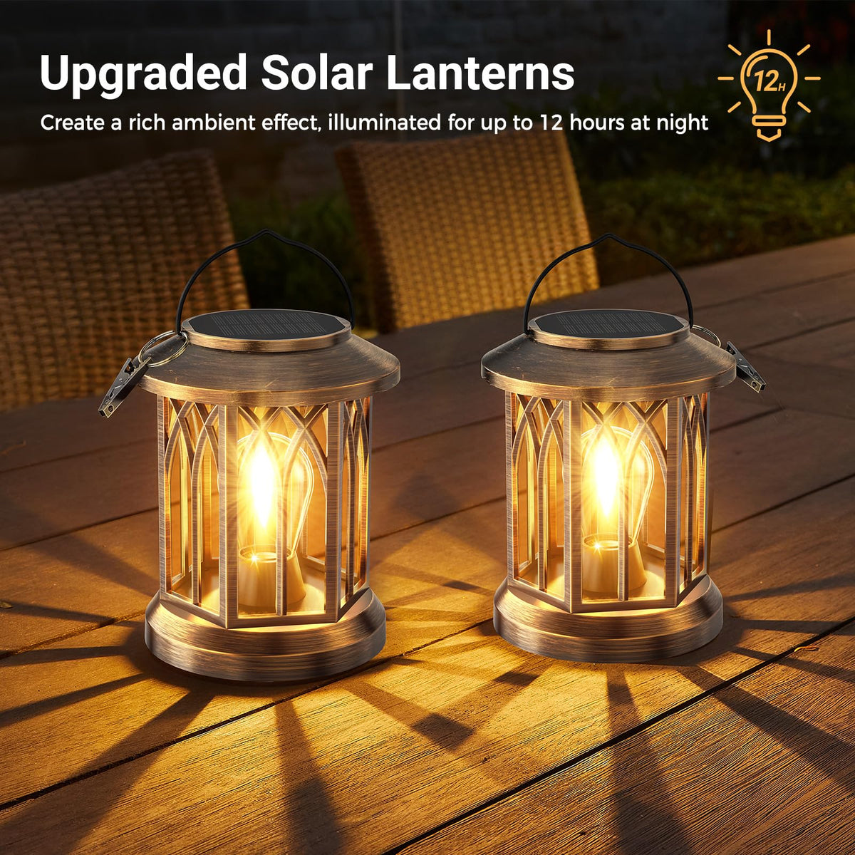 Why Choose Wdtpro Solar Lanterns Lights? &Nbsp; 1. Modern Style And Perfect Outdoor Decoration: Enhance Any Area With A Touch Of Uniqueness And Beauty, Perfect For Adding A Stylish Flair To Your Outdoor Spaces. 2. Versatile Applications: Ideal For Decorating And Lighting Up Gardens, Patios, Porches, Backyards, Walkways, Tables, Paths, And More, Creating A Beautiful And Inviting Ambiance. 3. Automatic Solar Lighting From Dusk To Dawn: Equipped With An 800Mah High-Capacity Battery, These Solar Lights Outdoor Charge Sustainably For 12-15 Hours, Ensuring They Stay Illuminated From Dusk Until Dawn. 4. Weatherproof And Sturdy: Featuring An Ip65 Waterproof Rating, Our Outdoor Solar Lanterns Are Built To Withstand Extreme Weather Conditions Including Rain, Snow, Sleet, And Heat, Making Them Perfect For Year-Round Use. 5. Easy Installation: Completely Solar&Nbsp;Powered With No Additional Wiring Required. Simply Assemble The Handle Clip Components Together. &Nbsp; Specifications: Color: 2700K Warm White Size: 10.25*5.1*6.6&Nbsp;Inches Solar Panel:2V/0.4W Charging Time: 6-8 Hours Working Time: 12 Hours Light Source Type: Led Tungsten Filament Material: Acrylonitrile Butadiene Styrene (Abs) Power Source: Solar Powered Waterproof:Ip65