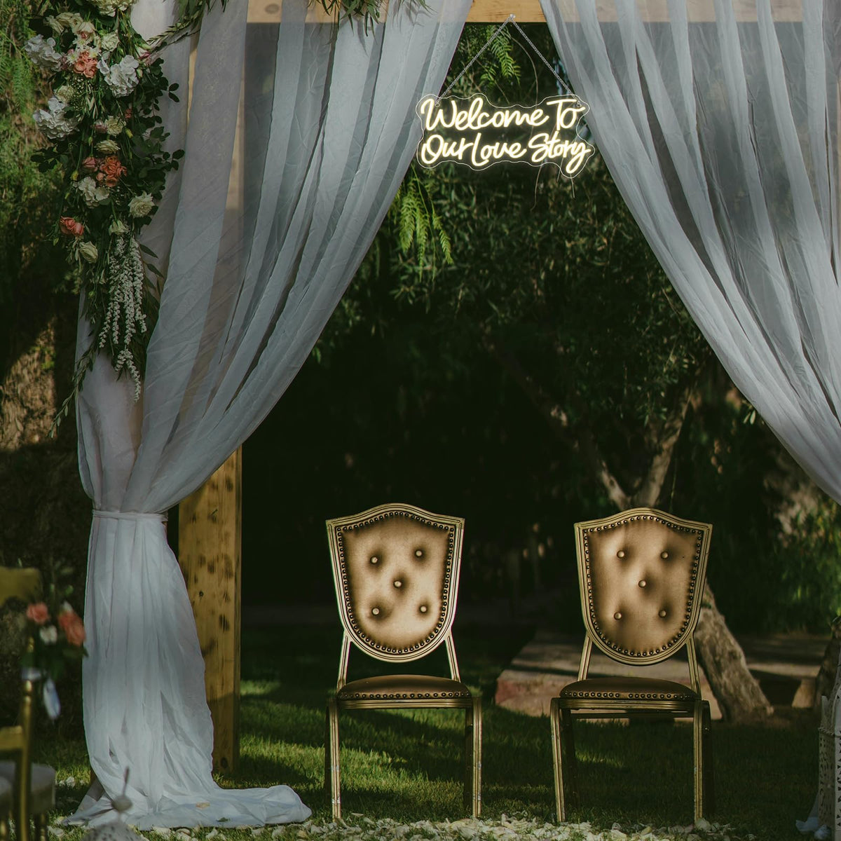 Wedding Neon Sign Welcome To Our Love Story Neon Signs For Wall Decor Warm White Led Lights Couple Light Up For Wedding Bedroom Home Anniversary Party Decoration Lover Gifts