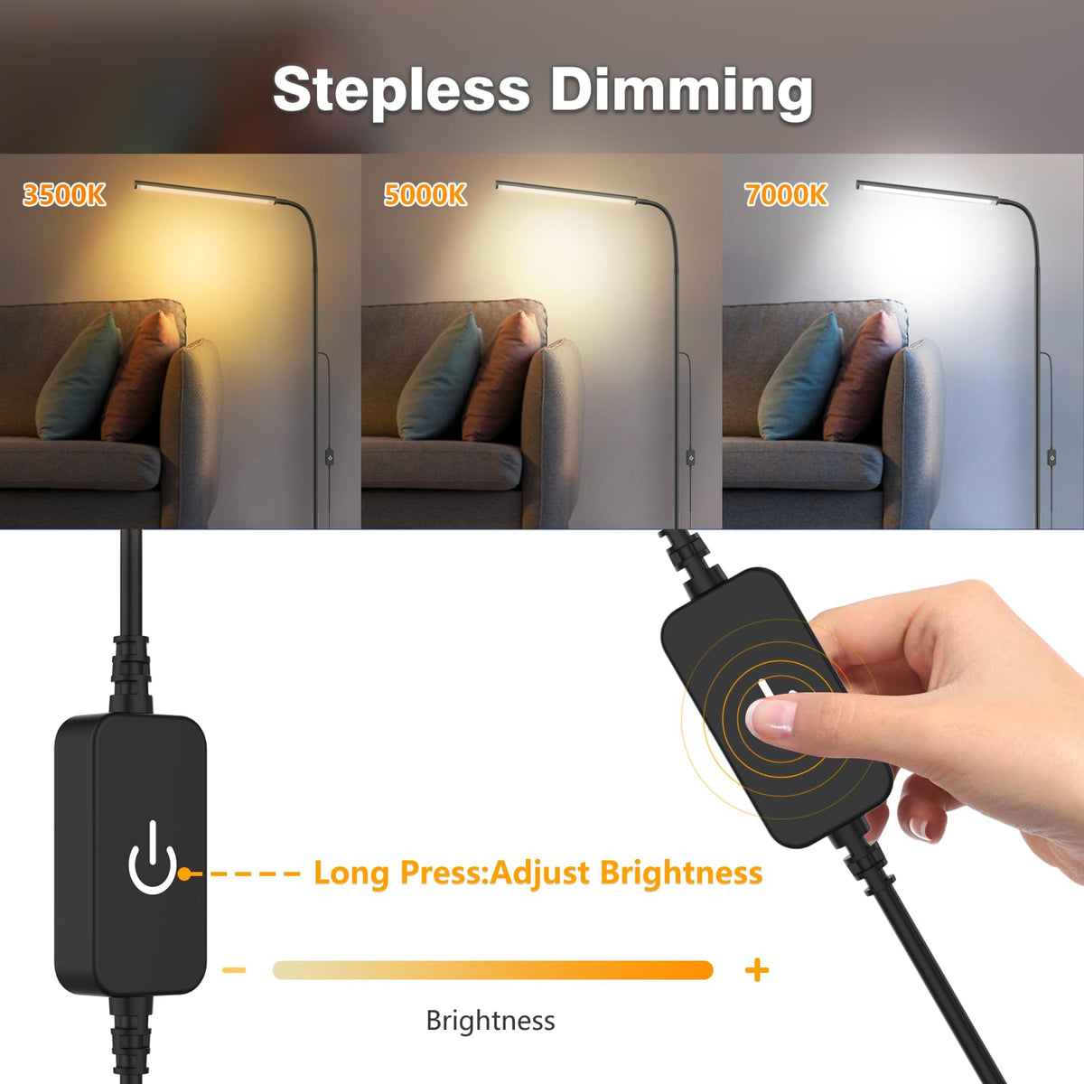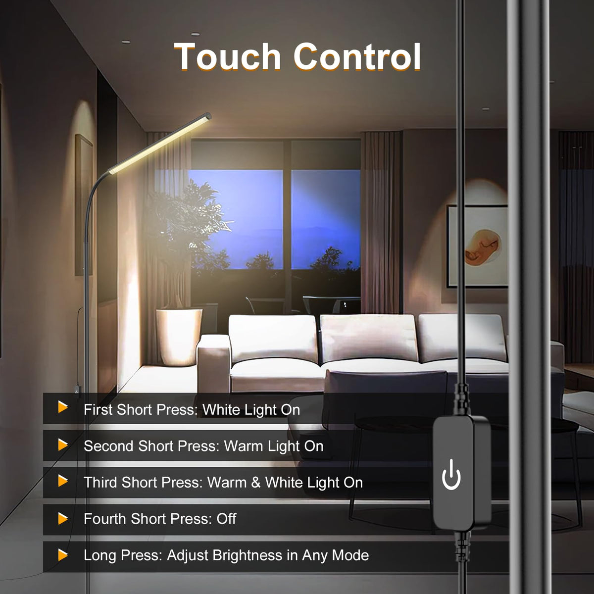 Wedeesun 15W Floor Lamp With Touch Control Adjustable Brightness 3500K-7000K 360 Gooseneck Led Floor Lamps Eye-Caring Floor Lamp
