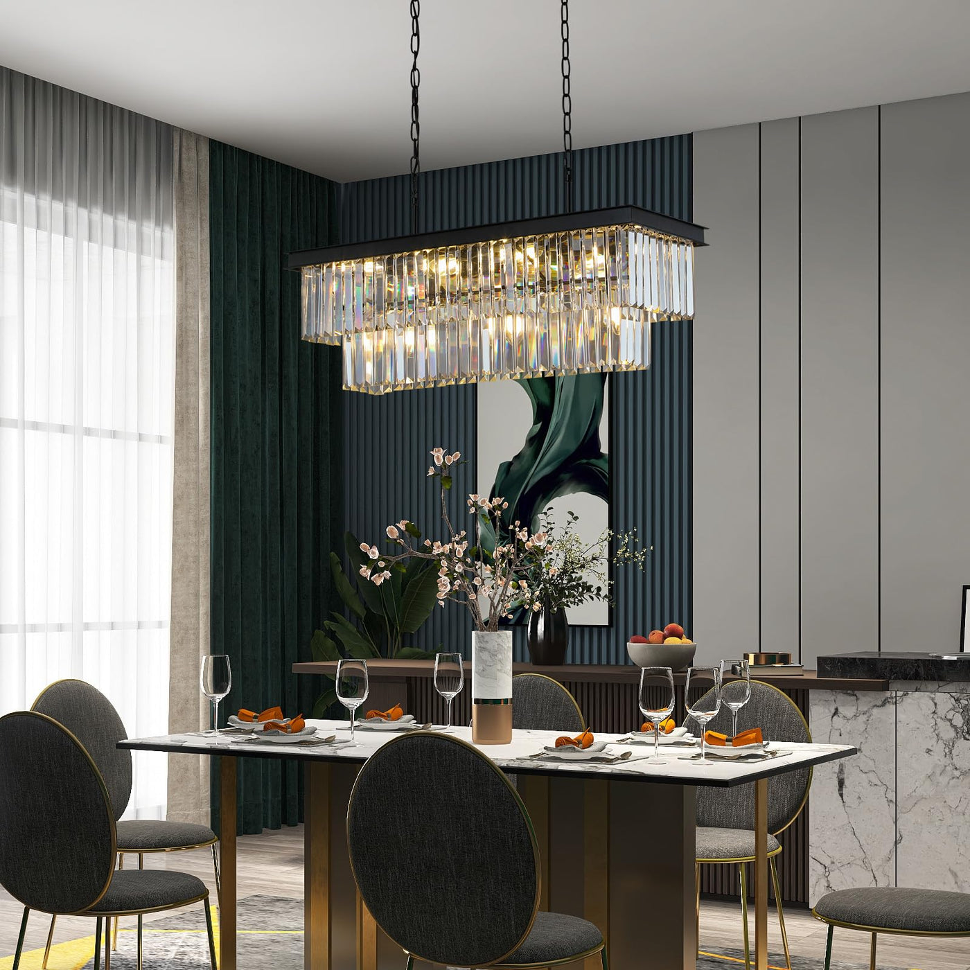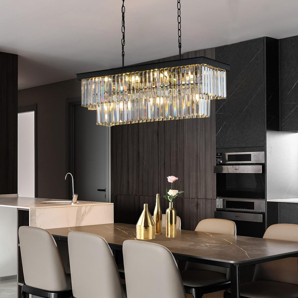 Weesalife 11-Light Black Modern Crystal Chandelier For Dining Room Kitchen Island L33.5"
