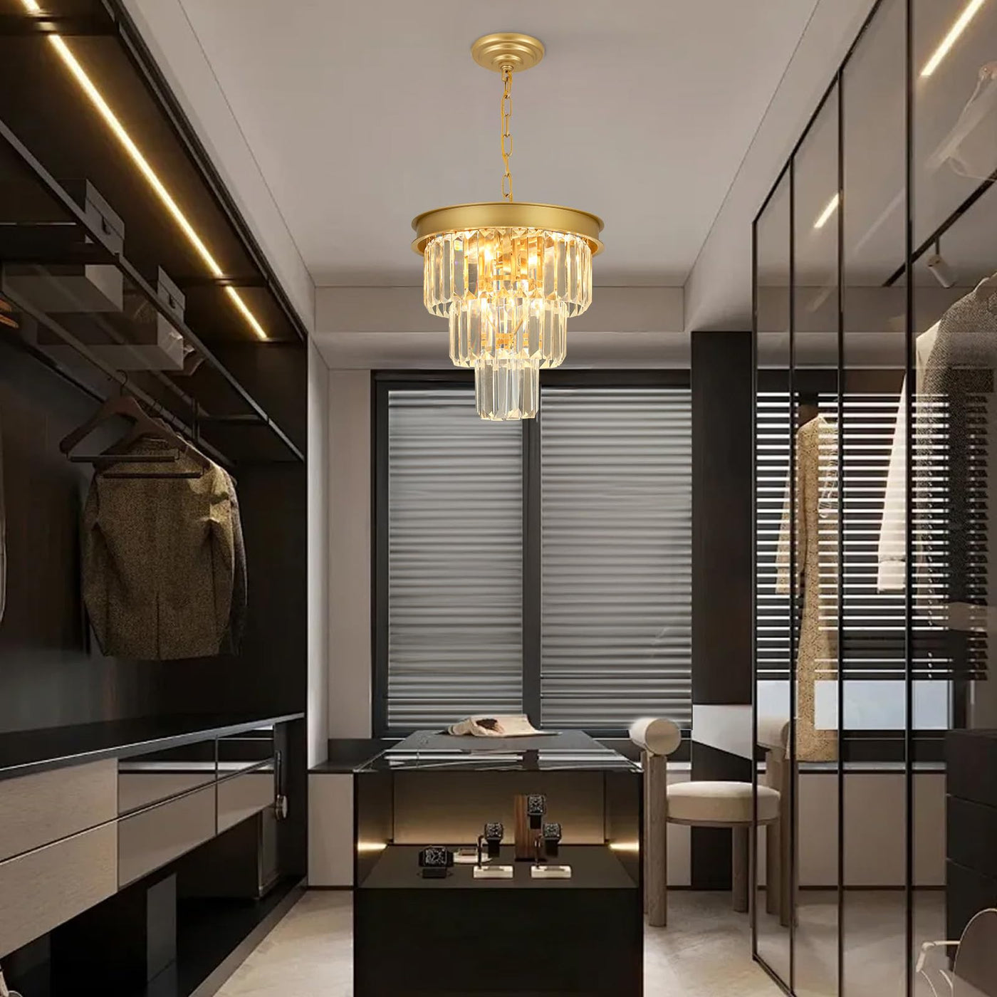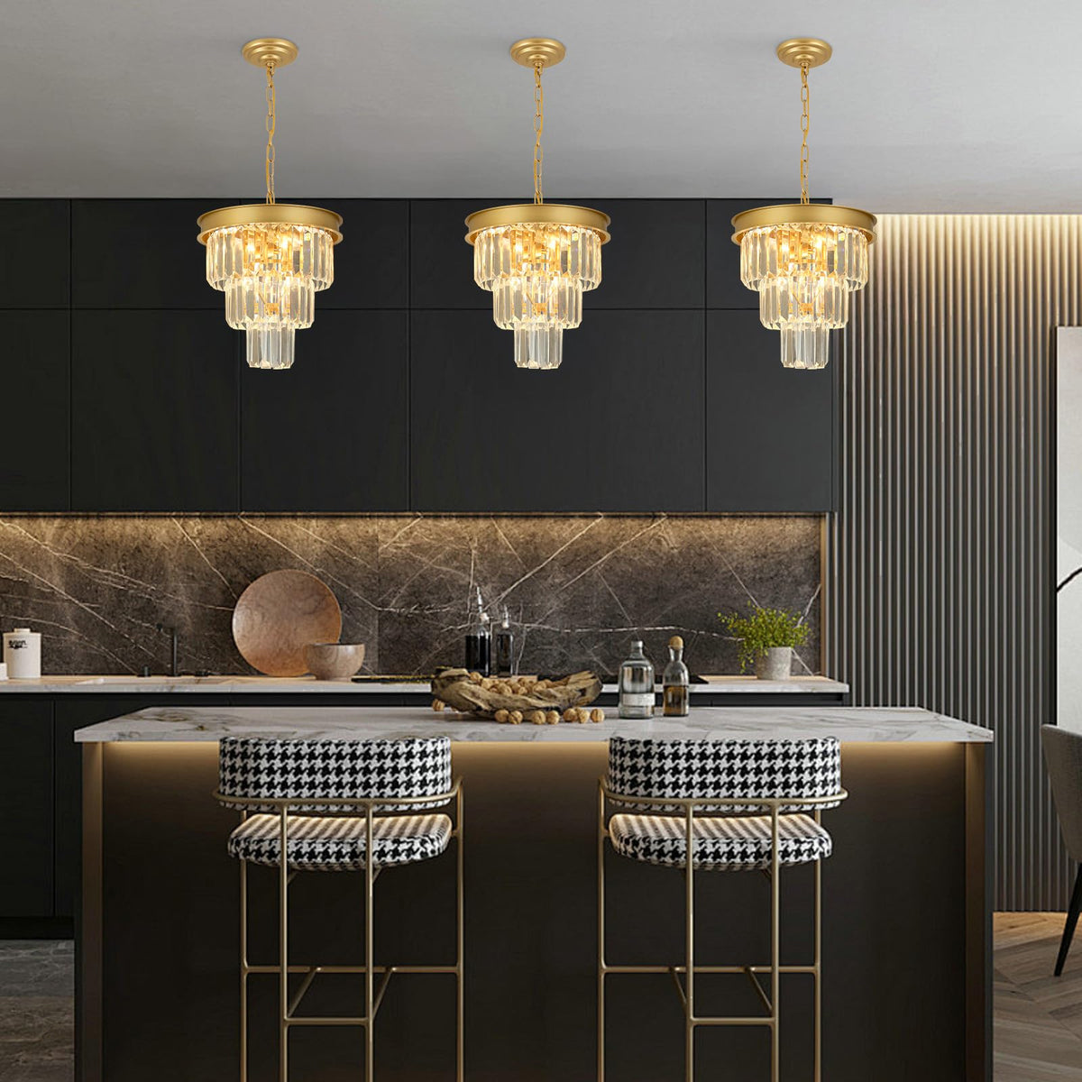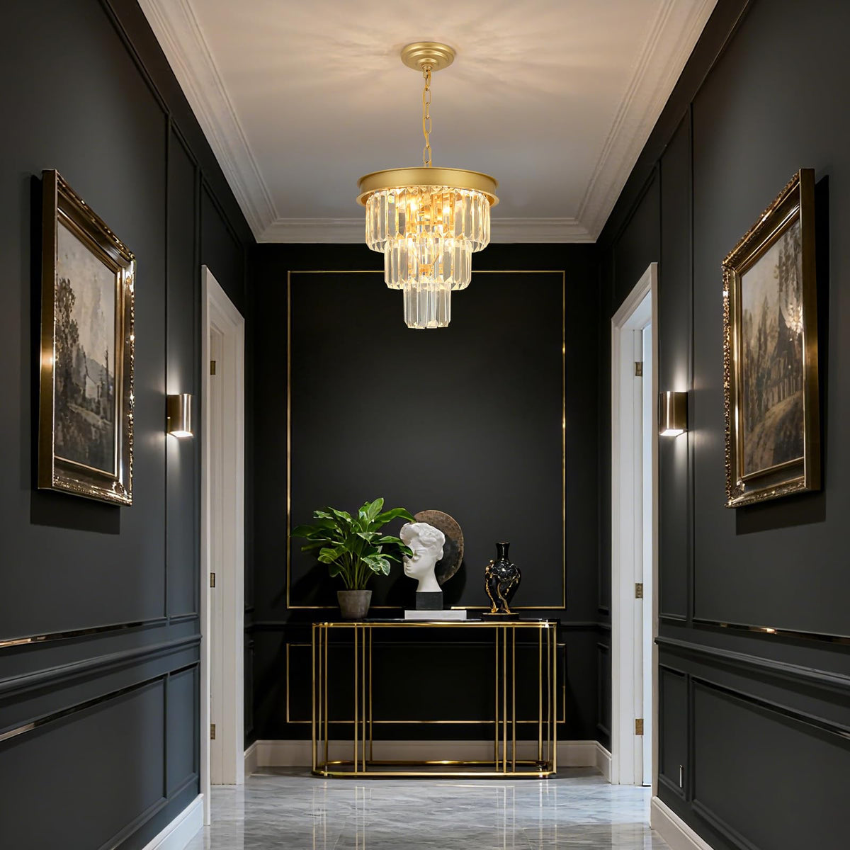 Gold Crystal Chandeliers:This Chandeliers For Dining Room Using K9 Crystal With 3-Tier Crystal Design And Gold Lamp Frame. When You Turn On The Light The Lighting Will Reflect Through The Crystal Adding A Romantic And Unique Atmosphere To Your Room Chandelier Size: This Cystal Pendant Light Has A Diameter Of 12 Inches A Maximum Mounting Height Of 52 Inches A Minimum Mounting Height Of 16 Inches And A Weight Of 10 Pounds. We Have More Styles Available For Your Whole House Lighting Needs Height Adjustable: The Package Of This Gold Crystal Chandeliers Contains One 40 Inches Hanging Chains You Can Adjust The Hanging Chains According To The Height You Need To Install Perfect For Your Ceiling Dimmable:This Modern Crystal Chandeliers Compatible With Led Incandescent And Halogen Bulbs With E12 Sockets(40W Max).This Dining Room Chandeliers Can Be Dimmable If You Use A Dimmable Bulb And Compatible Dimmer Switch(Bulbs And Dimmers Not Included) Applicable Scene:This Small Round Chandeliers Combines Light stylish And Modern Style It Can Be Used As A Dining Room Light Fixtures Over Table And It Can Also Be Used In The Kitchen Island;Bedroom;Checkroom;Entryway;Foyer Etc Easy Installation: The Package Of The Crystal Chandeliers For Dining Room Contains All The Installation Accessories We Also Provide Detailed Installation Instructions Please Follow The Instructions To Install Very Easy Customer Service: We Provide All Customers With Satisfactory Service If You Have Any Incomprehension About The Order Or Product Or Kitchen Island Chandeliers Installation And Other Problems We Will Provide You With Satisfactory Solutions Within 24 Hours