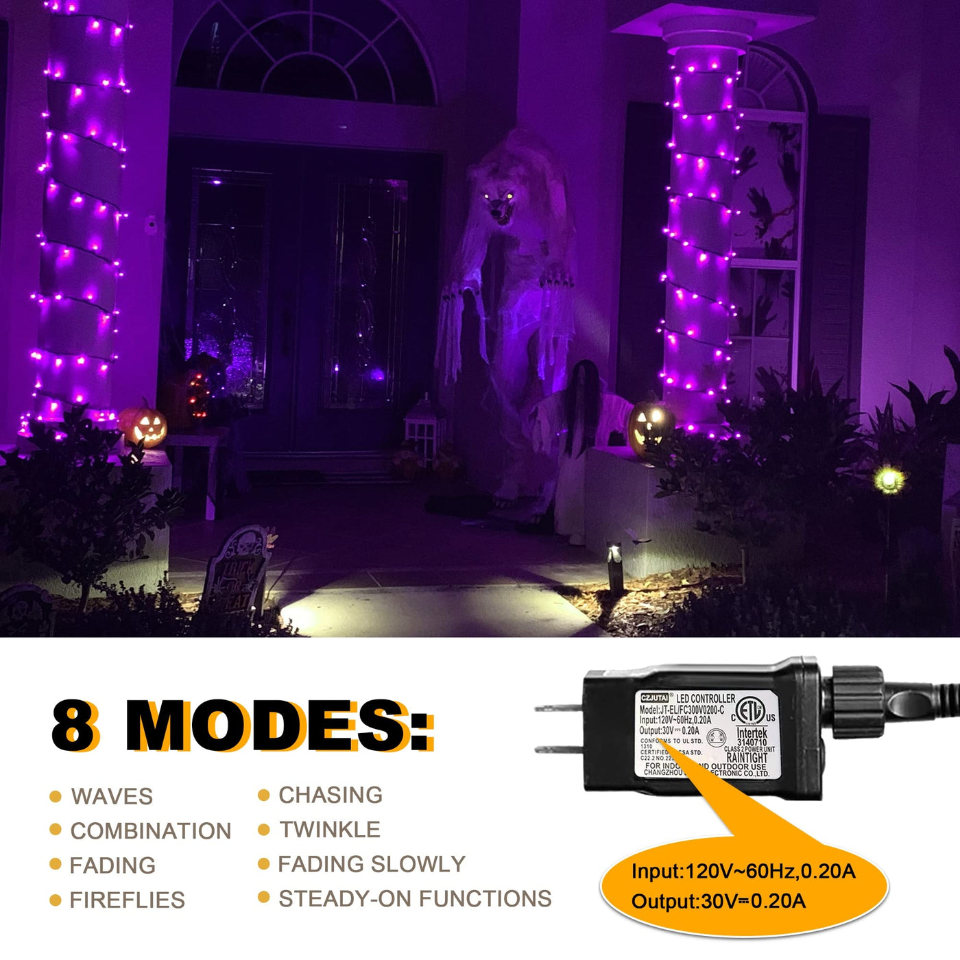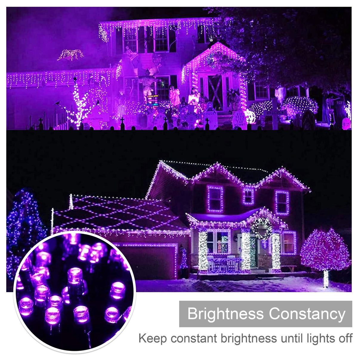 Length: 66FT with 200 vibrant purple LEDs for expansive decoration.