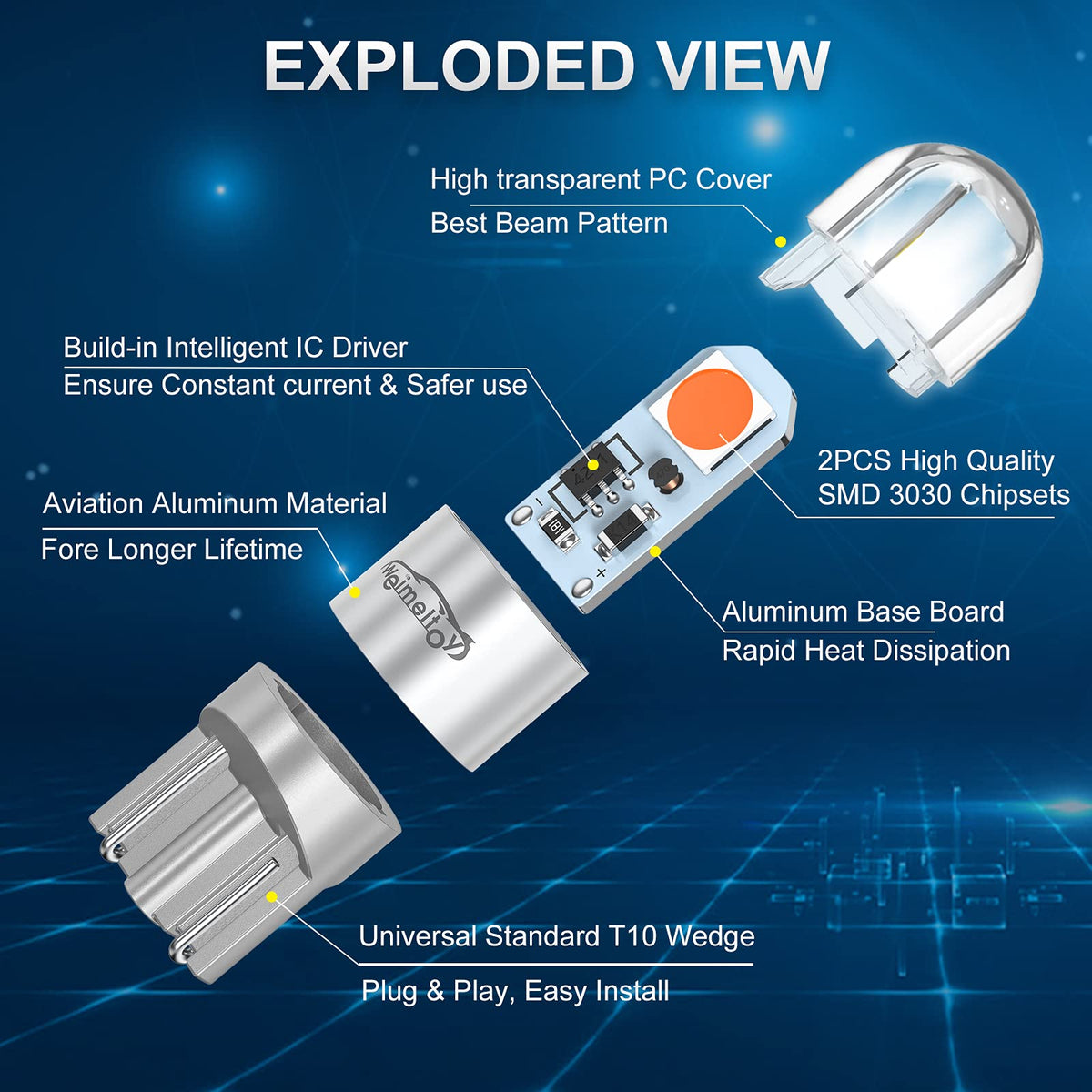 Q: Do these bulbs cause any errors after installation?A: The WEIMELTOY 194 LED Car Bulbs are CAN-BUS error free, meaning they do not trigger error messages in compatible vehicles after installation.