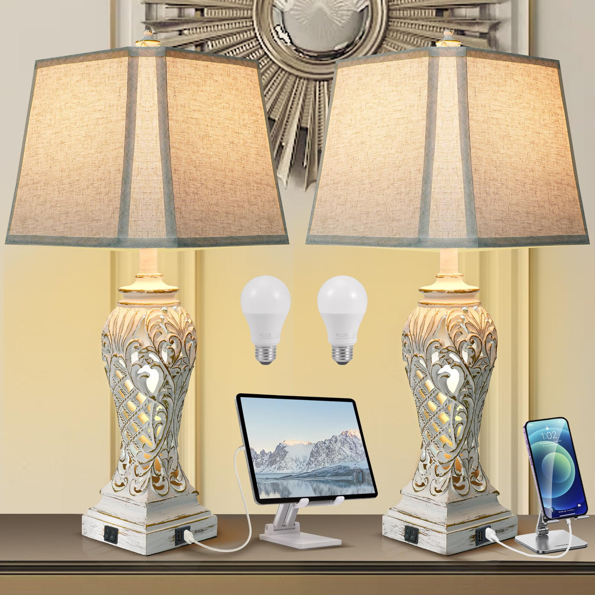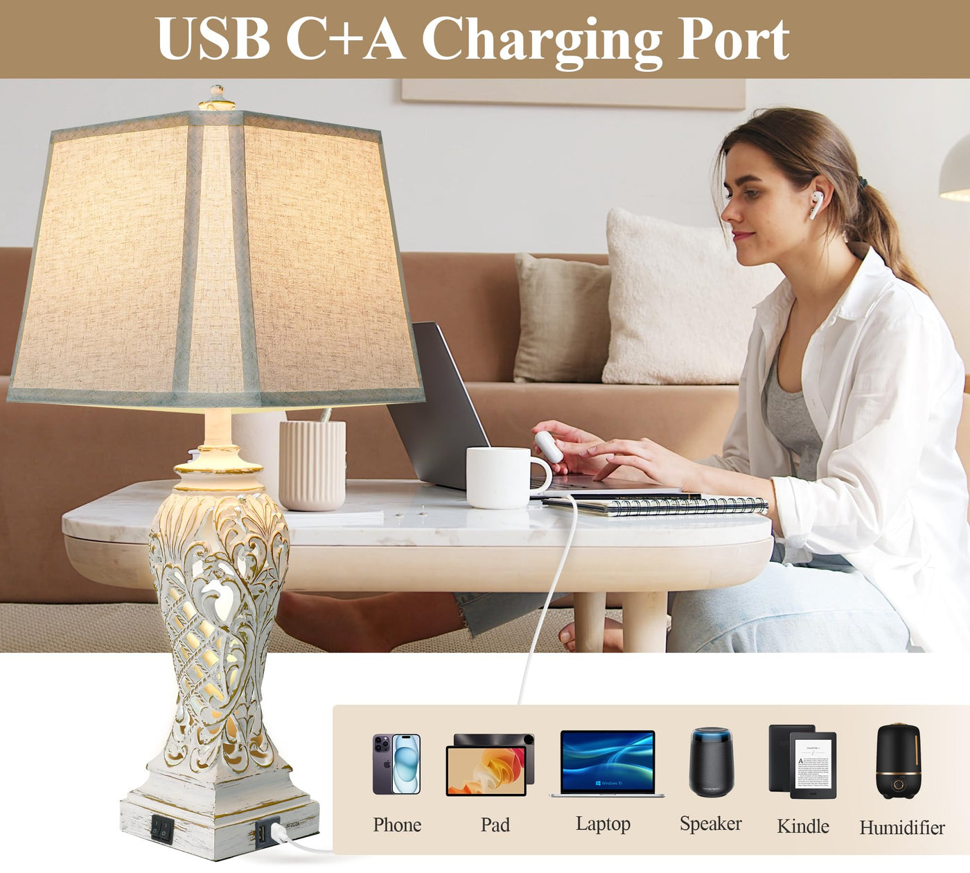 Weiters 29'' Tall Farmhouse Table Lamps Set Of 2, Boho Table Lamp For Living Room With Usb C+A, Bedside Lamp With Nightlight For